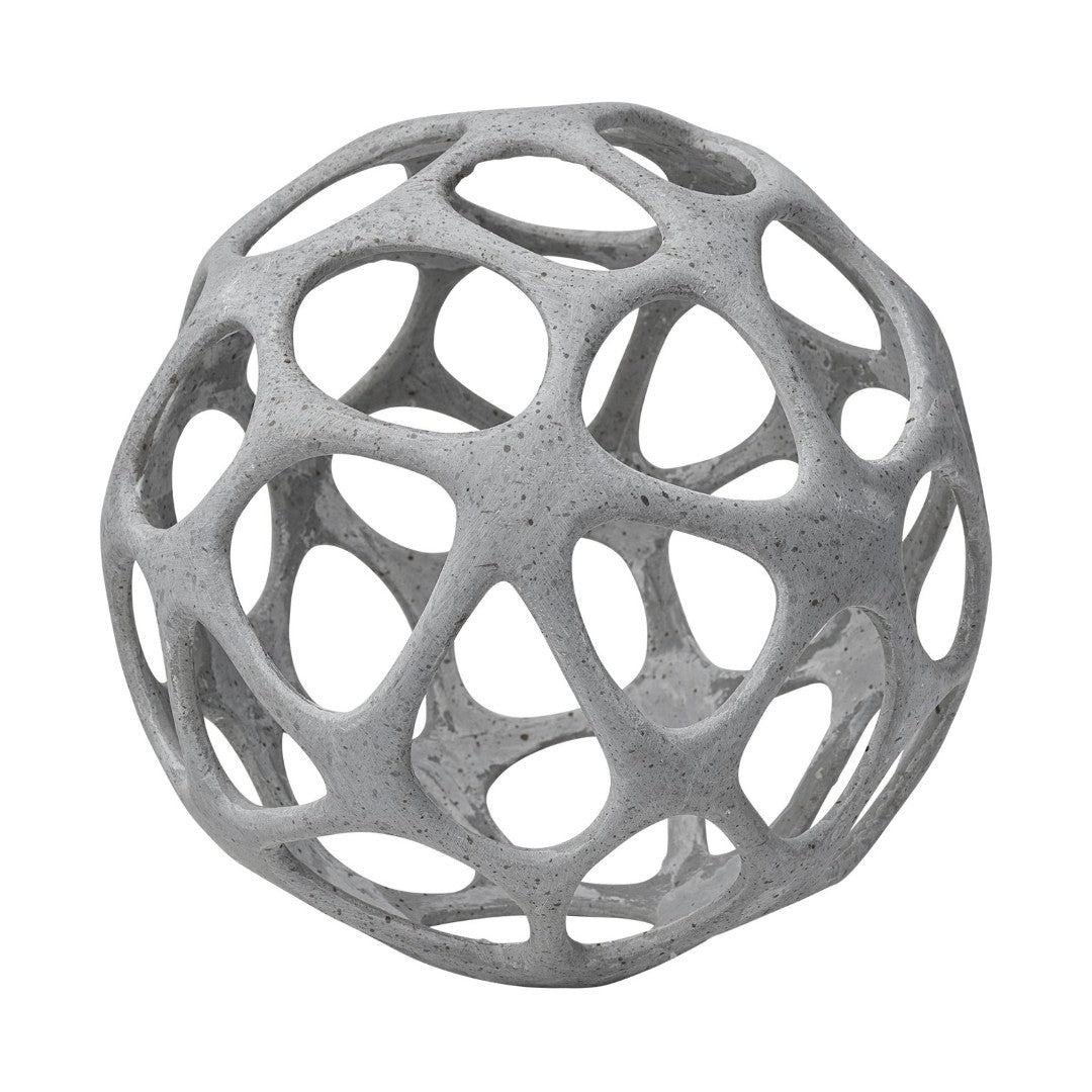 A sculptural accent that blends modern simplicity with coastal warmth, this hollow decorative orb adds texture and visual interest to shelves, mantels, or tabletops. Its rustic off-white finish and openwork design create light, shadow, and an airy focal point that complements relaxed modern, coastal, and contemporary interiors.