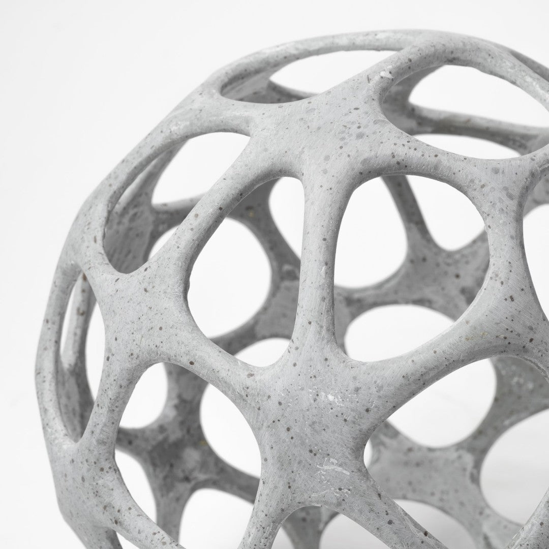 - The Spiro, shaped like a orb with hollow cut outs, skillfully crafted from resin, is a beautiful and unique addition to your space.