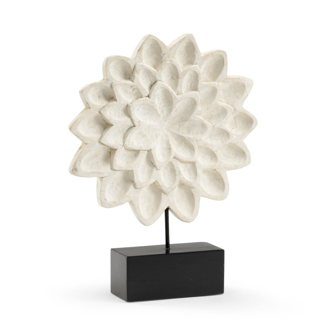 Add a refined, sculptural accent to your living room, bedroom, or office with this hand-carved floral piece. Its crisp white petals and sleek black base create a striking modern-transitional contrast that complements minimalist, contemporary, and classic interiors alike. Perfect for tabletops, bookcases, mantels, or reception areas, it brings subtle artistry and texture without overpowering the space.