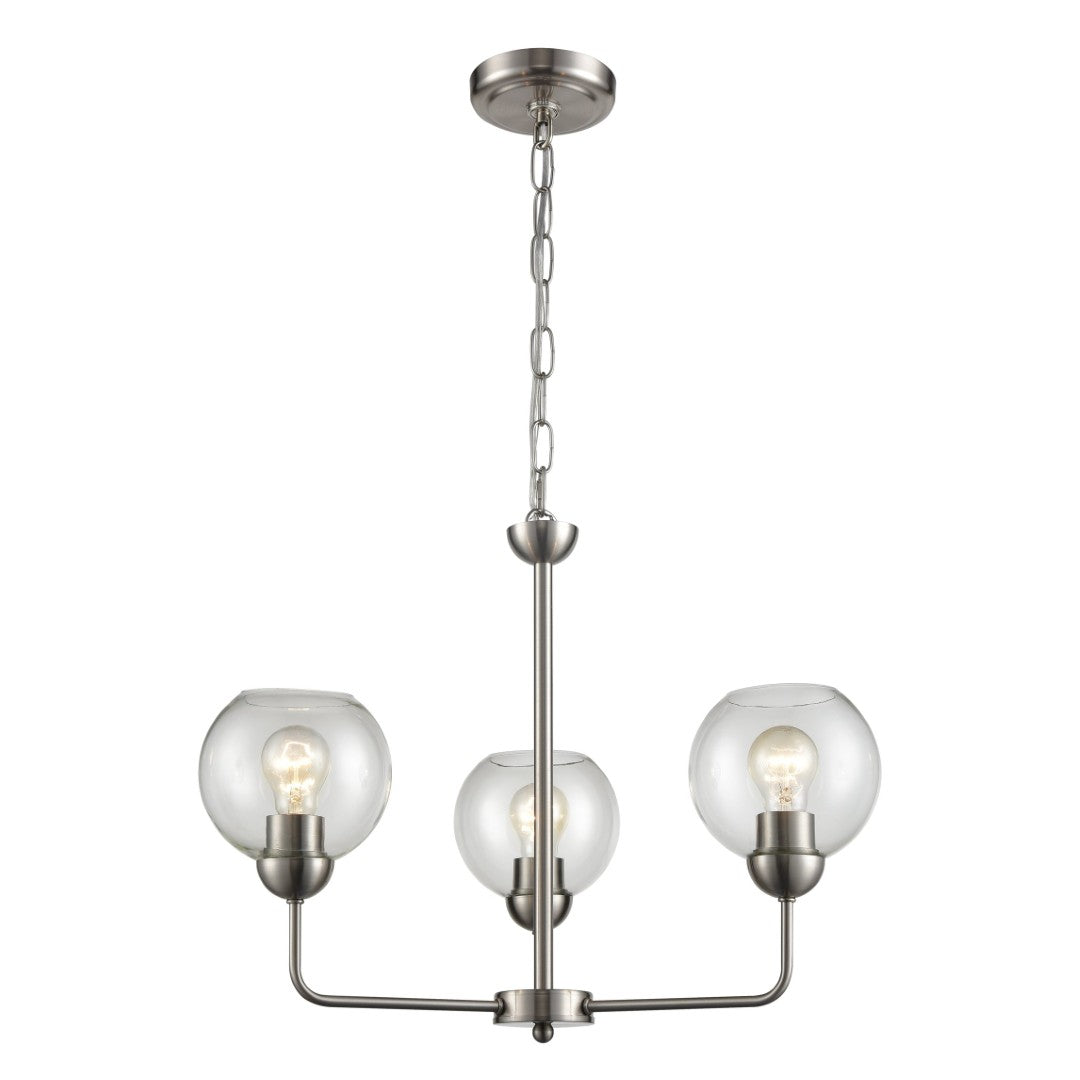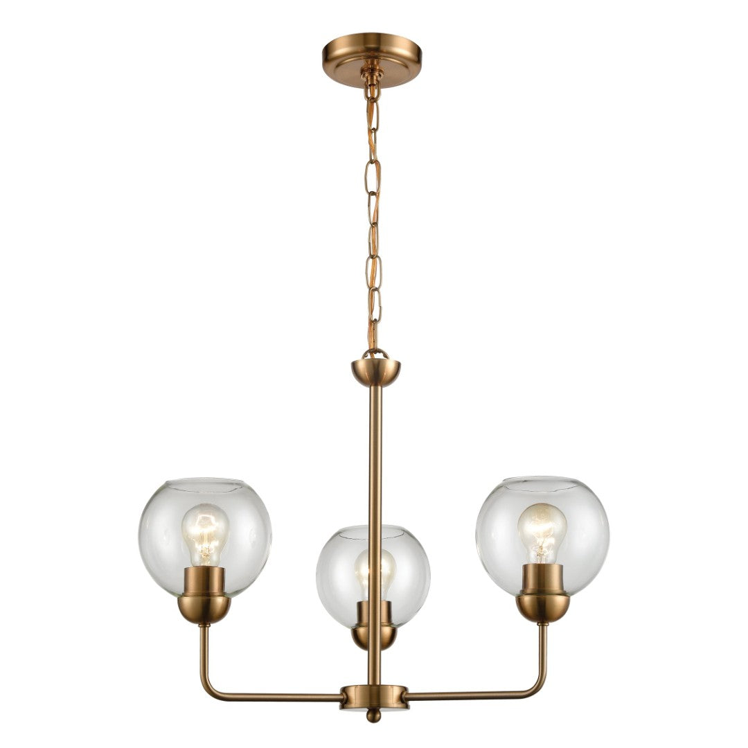 Elevate your interior with the Astoria chandelier — a refined blend of midcentury inspiration and contemporary simplicity. Curved satin-gold metal arms cradle three clear glass globes to create a warm, sculptural focal point that complements modern, transitional, and retro-inspired spaces. Ideal for dining areas, entryways, or living rooms, this fixture balances airy elegance with eye-catching form.