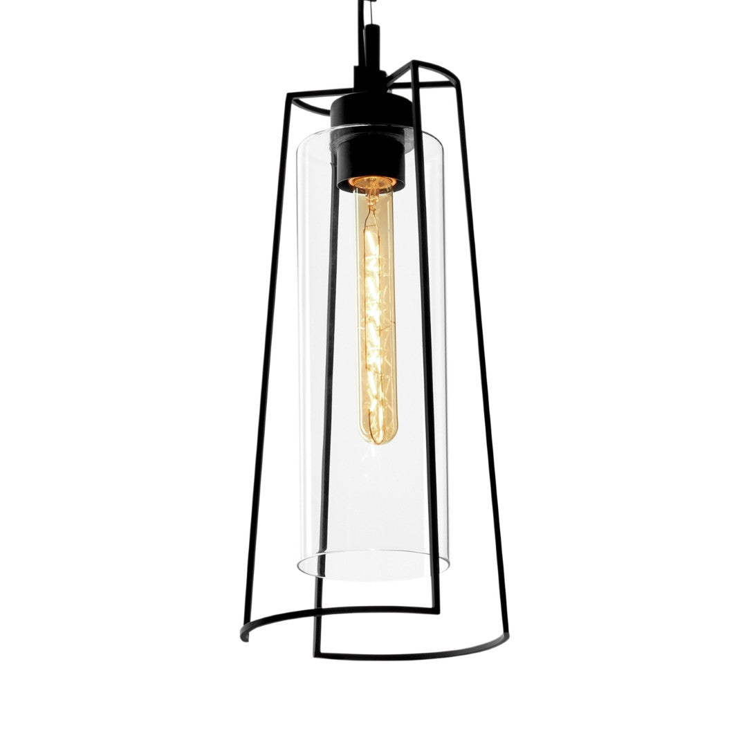 Elevate your interior with a contemporary pendant that blends minimalist geometry and airy elegance. The thin matte black metal frame appears to float around a clear inner glass shade, creating a refined focal point that complements modern, industrial, and transitional spaces. Ideal for kitchens, dining areas, entryways, or over a bar, this single-light pendant provides both ambient illumination and sculptural style.