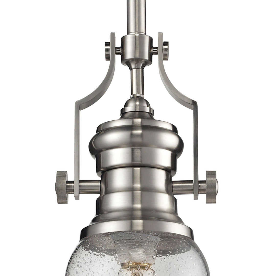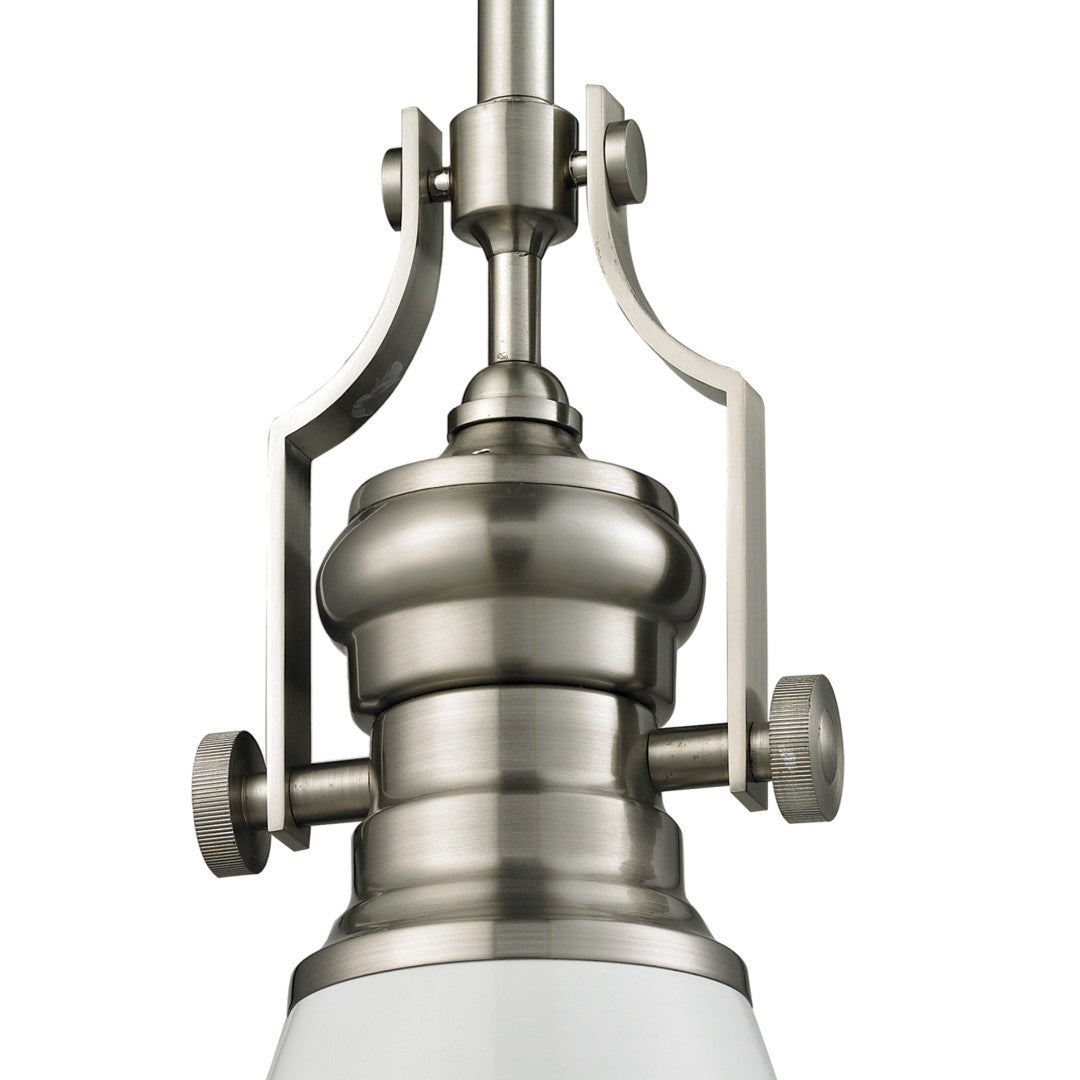 Bring timeless, handcrafted character to your space with the Chadwick 7" mini pendant. Inspired by early 20th-century lighting and antique forms, this satin nickel fixture blends classic detailing with durable metal construction to suit traditional and transitional interiors. Its compact footprint and elegant profile make it ideal for task or accent lighting over kitchen islands, entryways, or bedside areas.