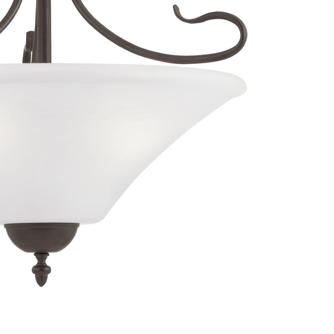 The Elipse 18" pendant blends classic tulip-shaped frosted glass with graceful, curving metal arms to create a refined focal point for living rooms, dining areas, kitchens, or entryways. Its painted bronze finish and transitional silhouette suit both traditional and contemporary interiors, delivering soft, diffused illumination and an elegant decorative presence.