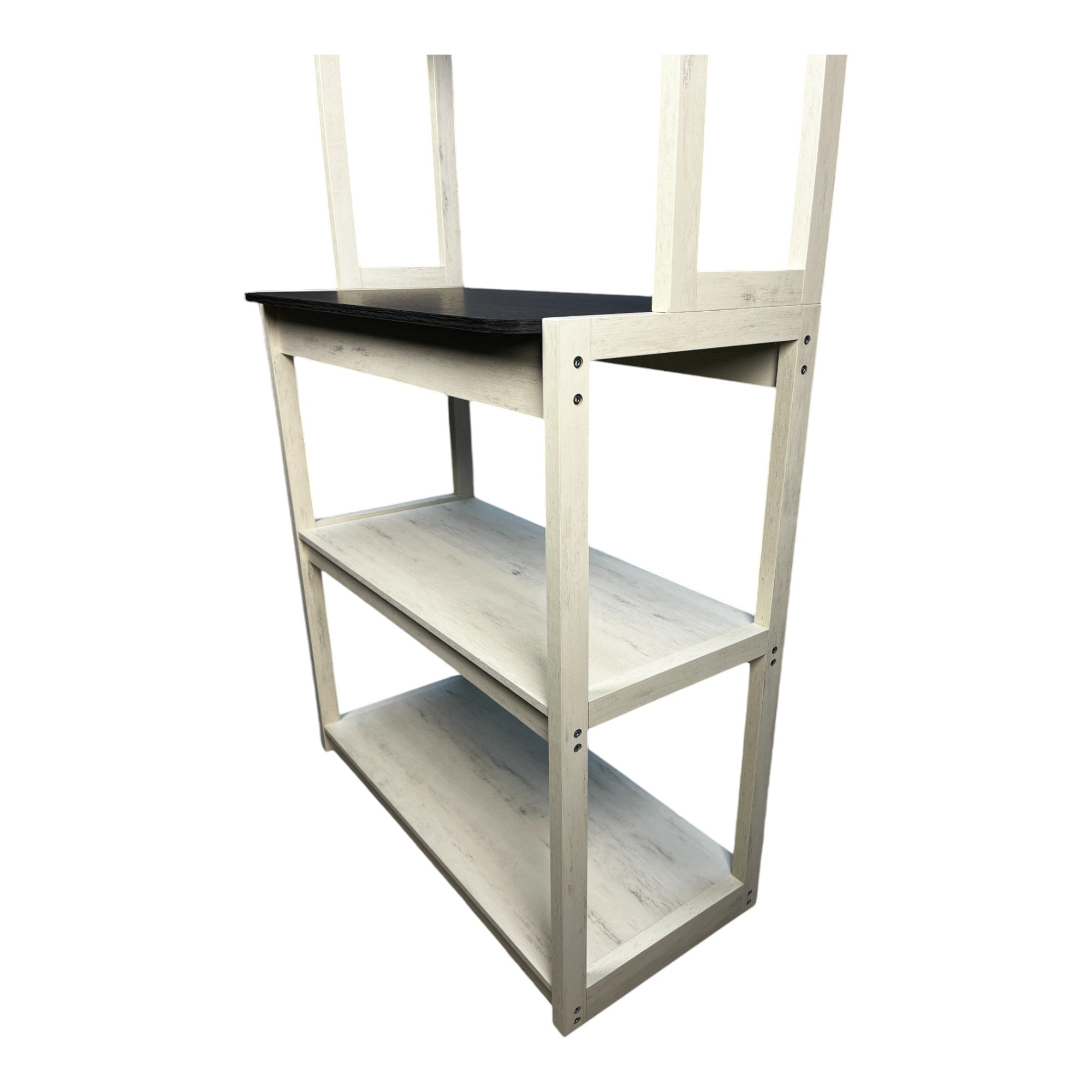 Add organized storage and stylish display to your kitchen with this versatile 5-tier baker’s rack. Designed to function as a microwave stand, coffee bar, or extra shelving, its clean white-and-black finish blends with modern and traditional decor while maximizing vertical storage in compact spaces.
