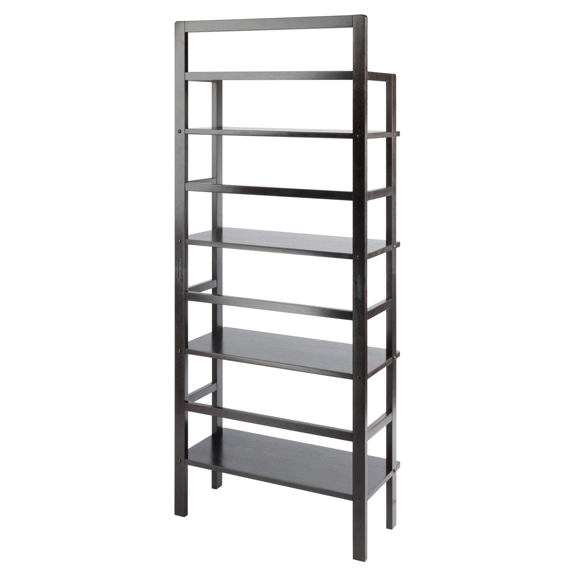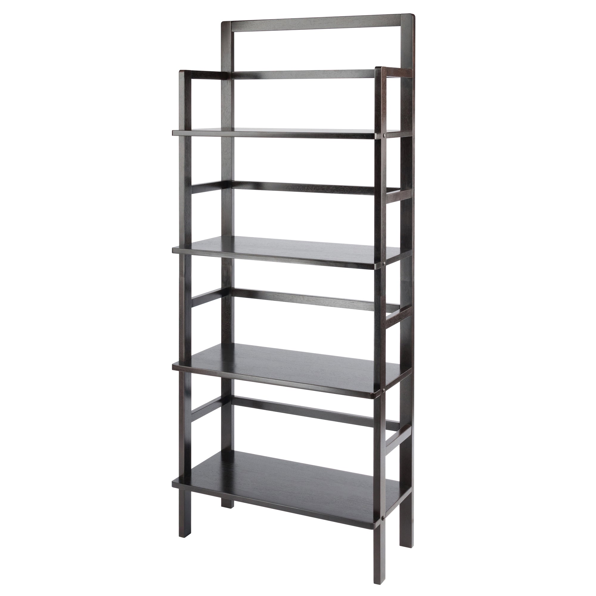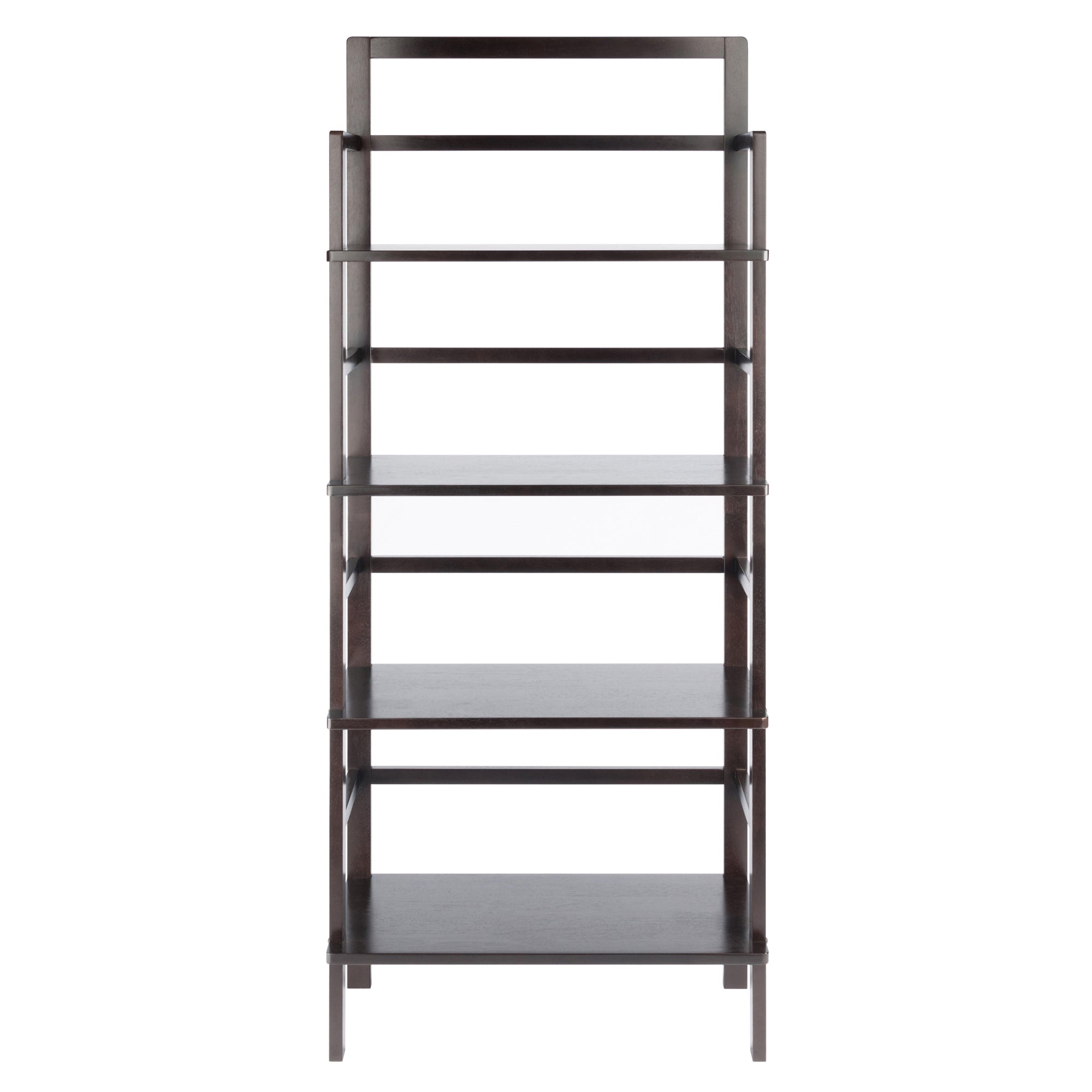 A contemporary twist on an antique Tuscan baker's rack, the Winsome Aiden Baker's Rack is a fantastic storage option for your kitchen, living room, or dining area. Its four open shelves with 15" of clearance are perfect for books, dishes, or display items. Made of solid wood in a rich coffee finish.