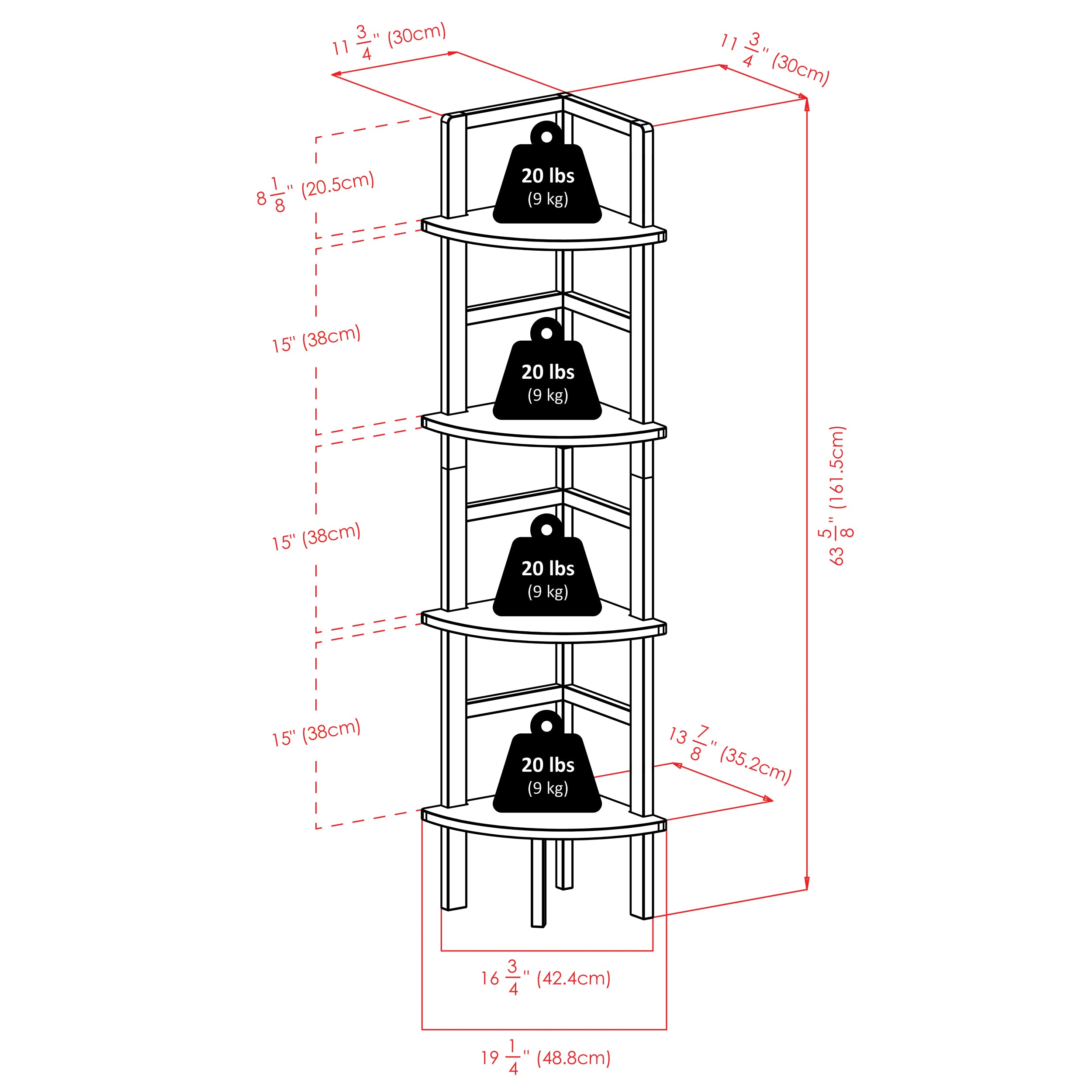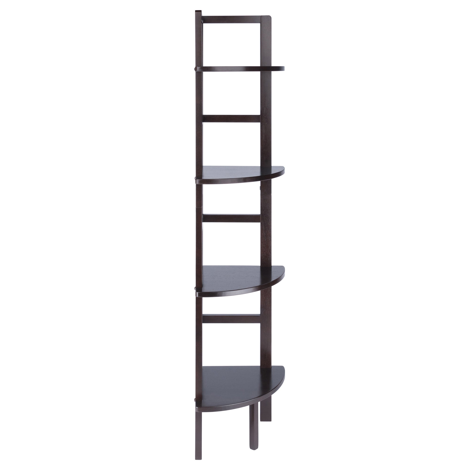 A contemporary twist on an antique Tuscan baker's rack, the Winsome Aiden Corner Baker's Rack is a fantastic storage option for unused corner space in your kitchen, living room, dining area, or bathroom. Its four open shelves with 15" of clearance are perfect for decorative items, plants, or photos. Made of solid wood in a rich coffee finish.