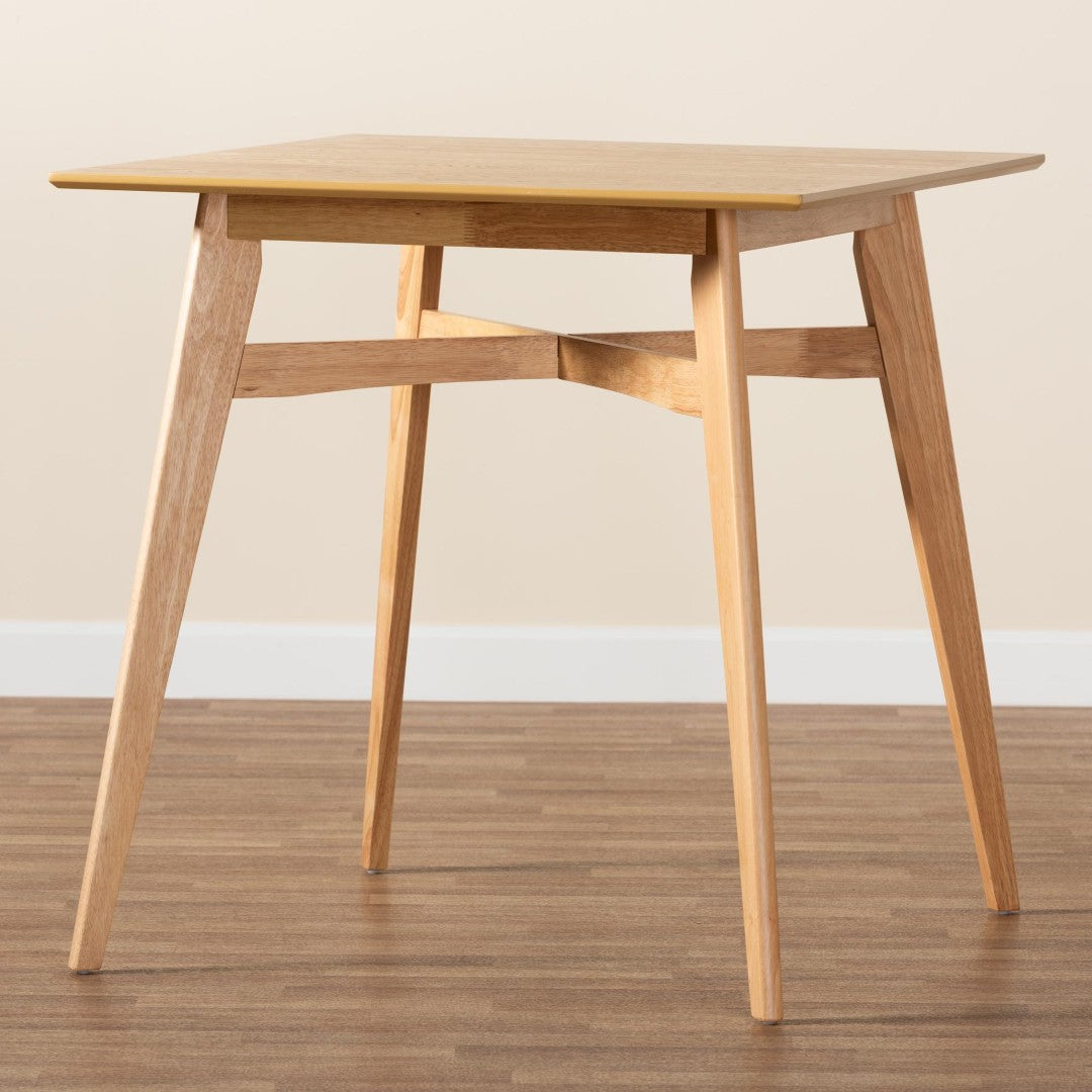 Crisp mid-century modern styling meets sturdy construction in this refined counter-height pub table. With a clean square top and distinctive crisscross base, it creates an inviting focal point for casual meals, game nights, or a stylish bar-area setup. Finished in natural oak, the Leena table balances geometric simplicity and durable support to seat four comfortably while elevating any dining or entertaining space.