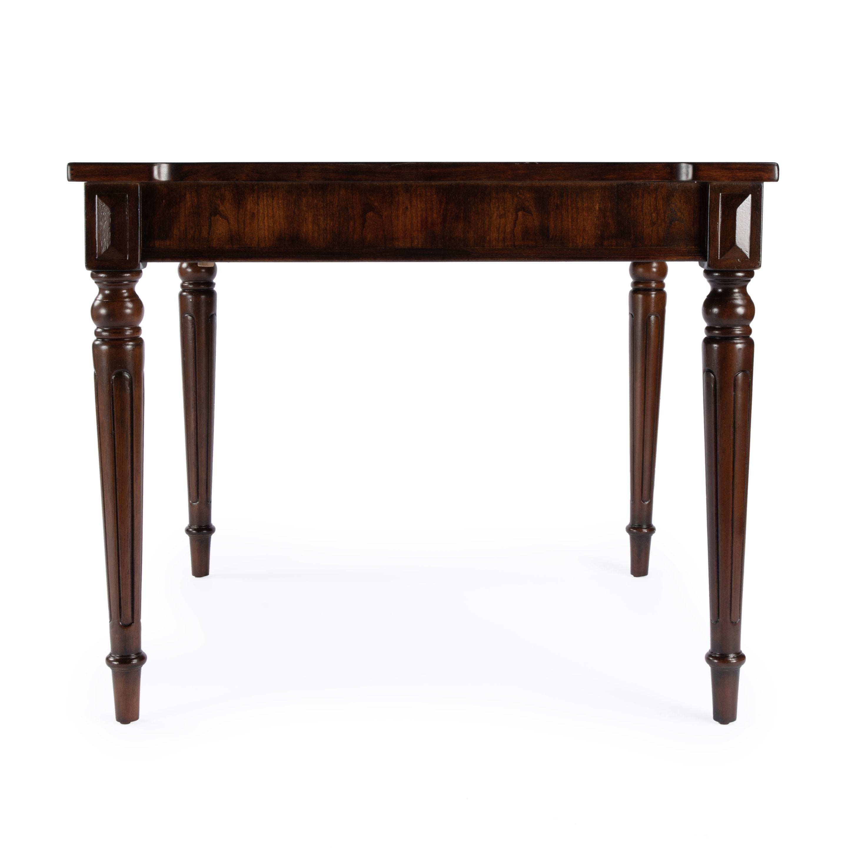 - Product Features (Construction Details): Finished in a lacquer to protect the Wood but limited against prolonged exposure to moisture and spills. Poplar hardwood solid legs, cherry, maple & walnut veneer on table top and apron over engineered wood