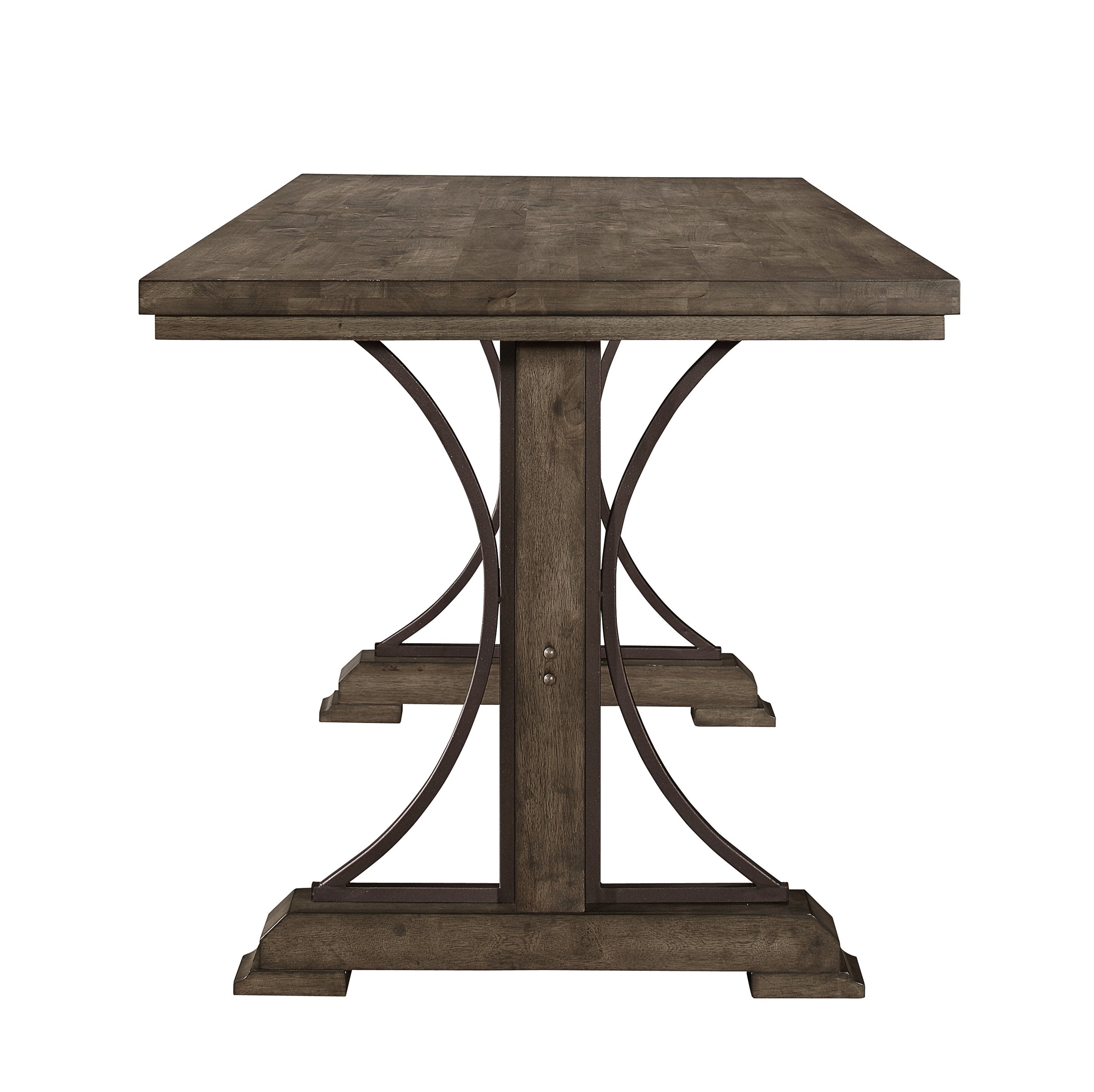 Bring a warm, industrial touch to your dining or entertainment area with this counter-height trestle table. The light brown wood finish and curved metal accents on the trestle base combine to create a casual yet refined centerpiece that works well for breakfasts, gatherings, and everyday use. Built for stability and presence, it balances sturdy construction with approachable counter-height seating.