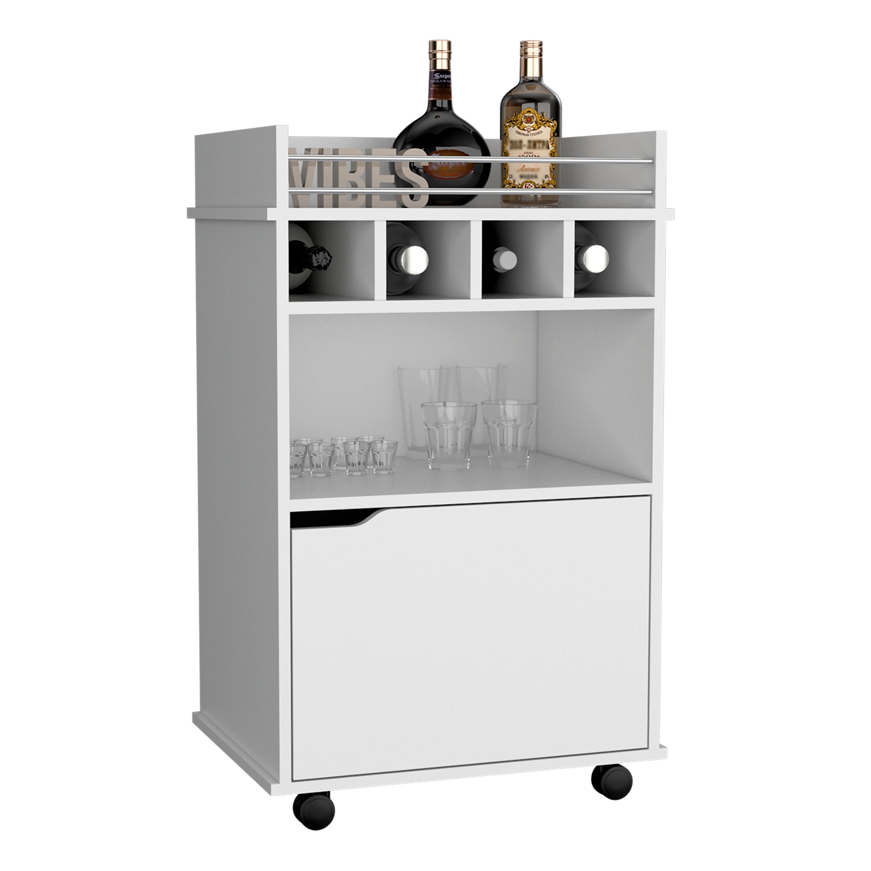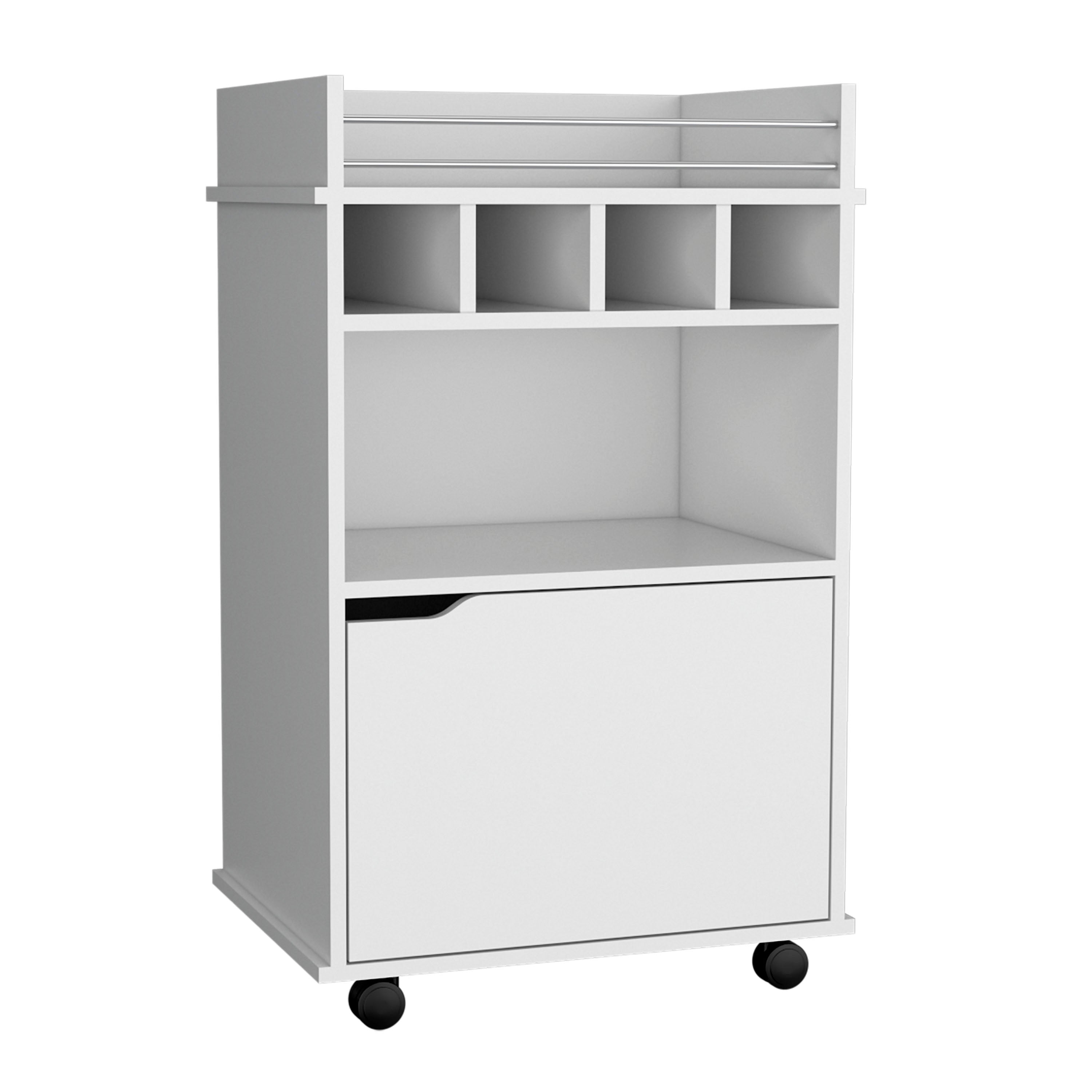 Upgrade your entertaining space with this versatile white bar cart—designed to combine storage, style, and mobility in a compact footprint. Ideal for small kitchens, dining rooms, or home bars, it offers dedicated spaces for bottles, glassware, and bar tools while maintaining a clean, modern look.