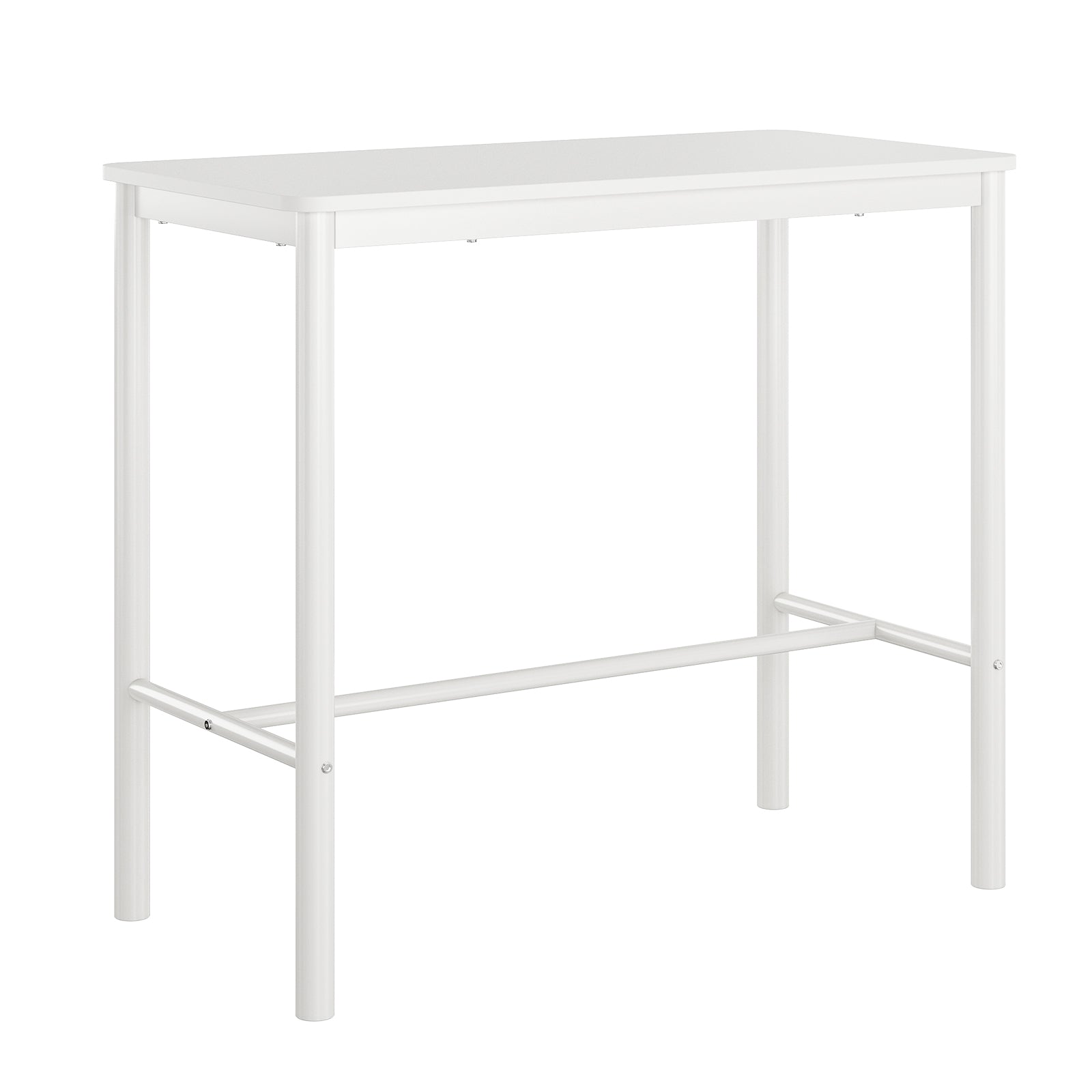 Bring modern simplicity and practical durability to your kitchen, dining nook, or entertainment area with this sleek 47-inch counter height bar table. Its clean white finish and metal-leg silhouette create a contemporary look that fits narrow spaces while providing a sturdy surface for meals, drinks, or social gatherings. Built for daily use, the table combines a thick, easy-to-clean tabletop with reinforced metal legs and thoughtful safety details.