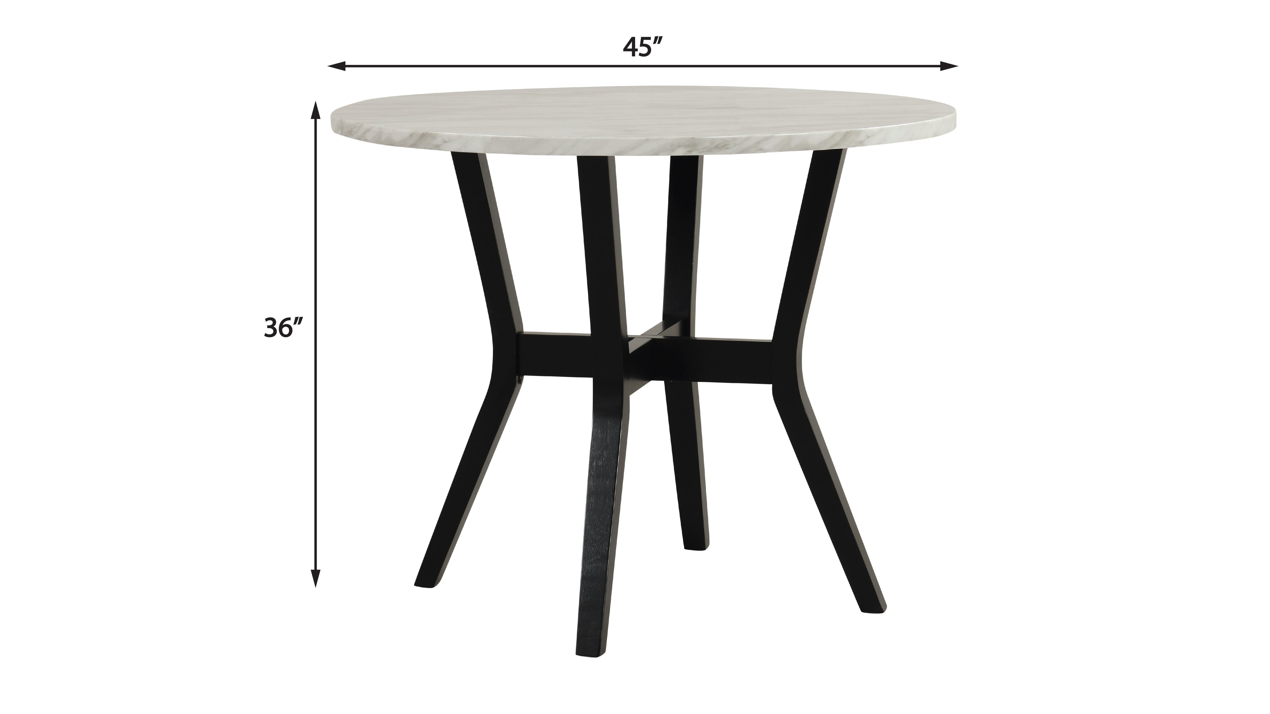 Bring modern elegance to your dining or entertaining space with this 5-piece pub-height dining set. The faux marble round tabletop, contrasted with a black base and sleek PU-upholstered chairs, creates a contemporary look that’s both stylish and practical for everyday use or casual gatherings. Designed for comfort and durability, this set balances compact footprint with generous seating.