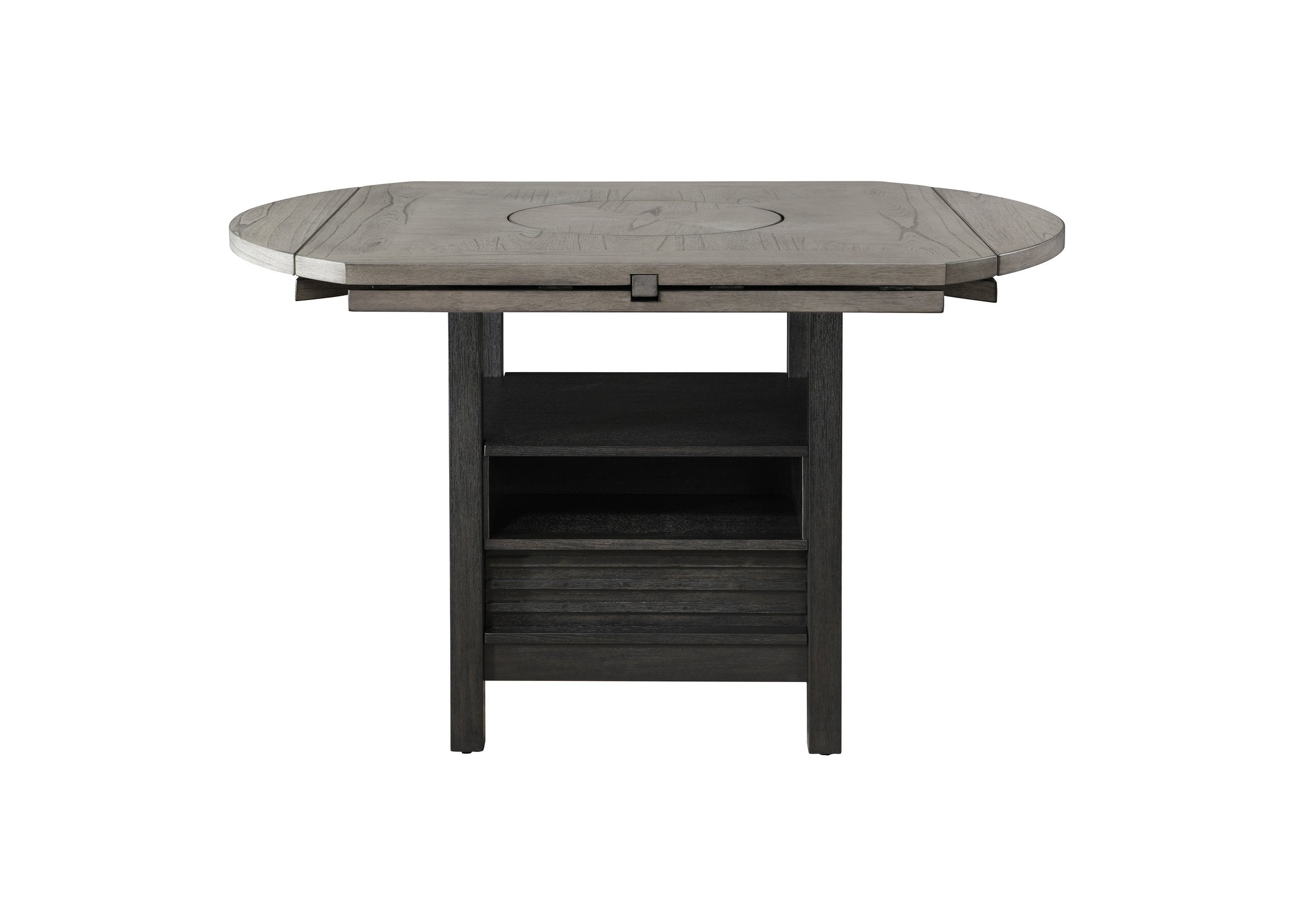 Bring farmhouse warmth to modern living with this 7-piece counter-height dining set that balances contemporary lines and functional design. The round wood-veneer table with a natural grain finish and integrated turntable creates an inviting focal point for meals and gatherings, while drop leaves and built-in shelving add practical storage. Six high-back, fabric-upholstered chairs provide comfortable seating and a refined contrast to the table’s darker base—making this set ideal for everyday dining or entertaining.