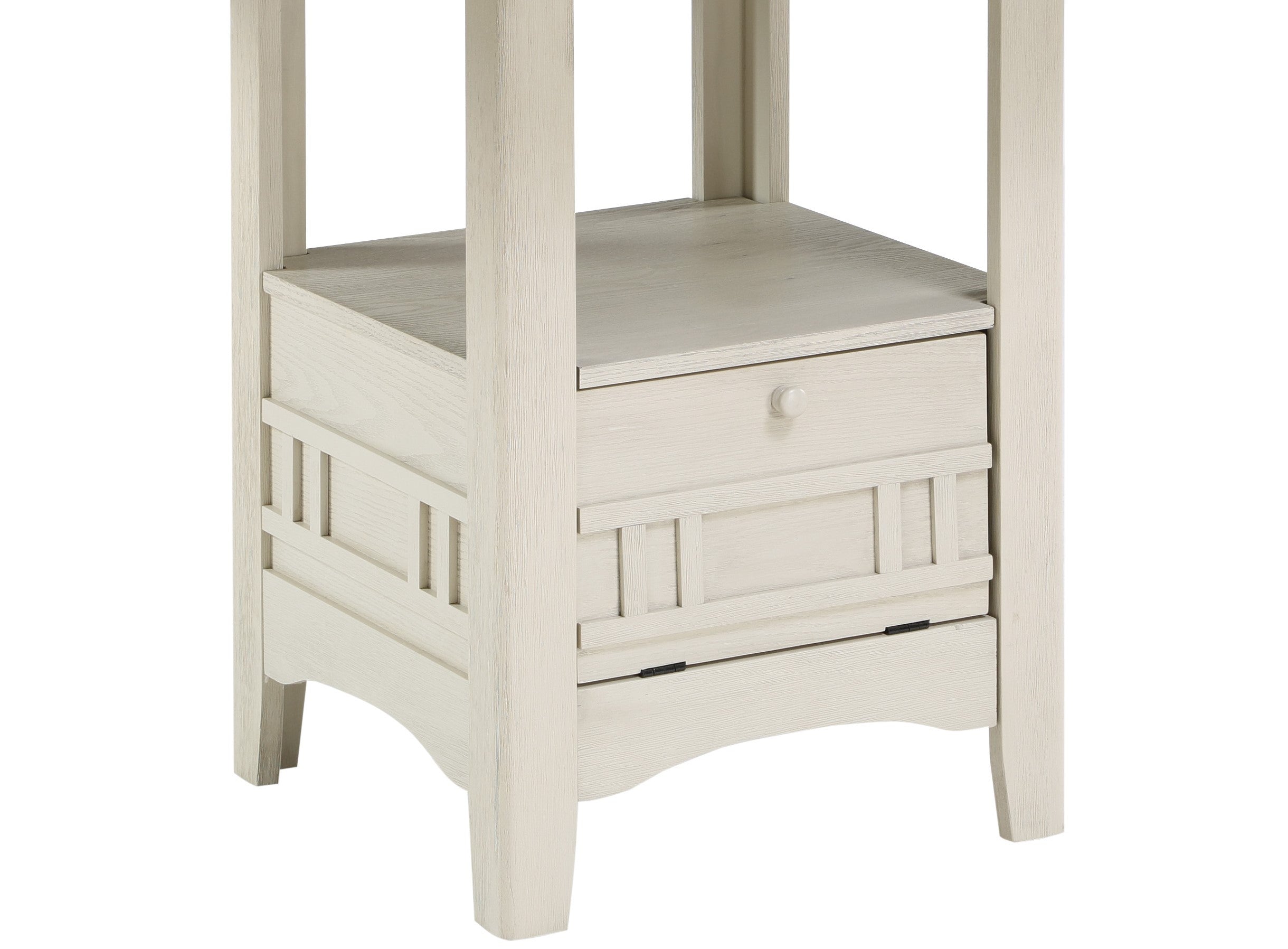 - Finish & Materials: Antique white and rosy brown finish over oak veneer to emphasize natural wood grain and provide a warm, lived-in look.
