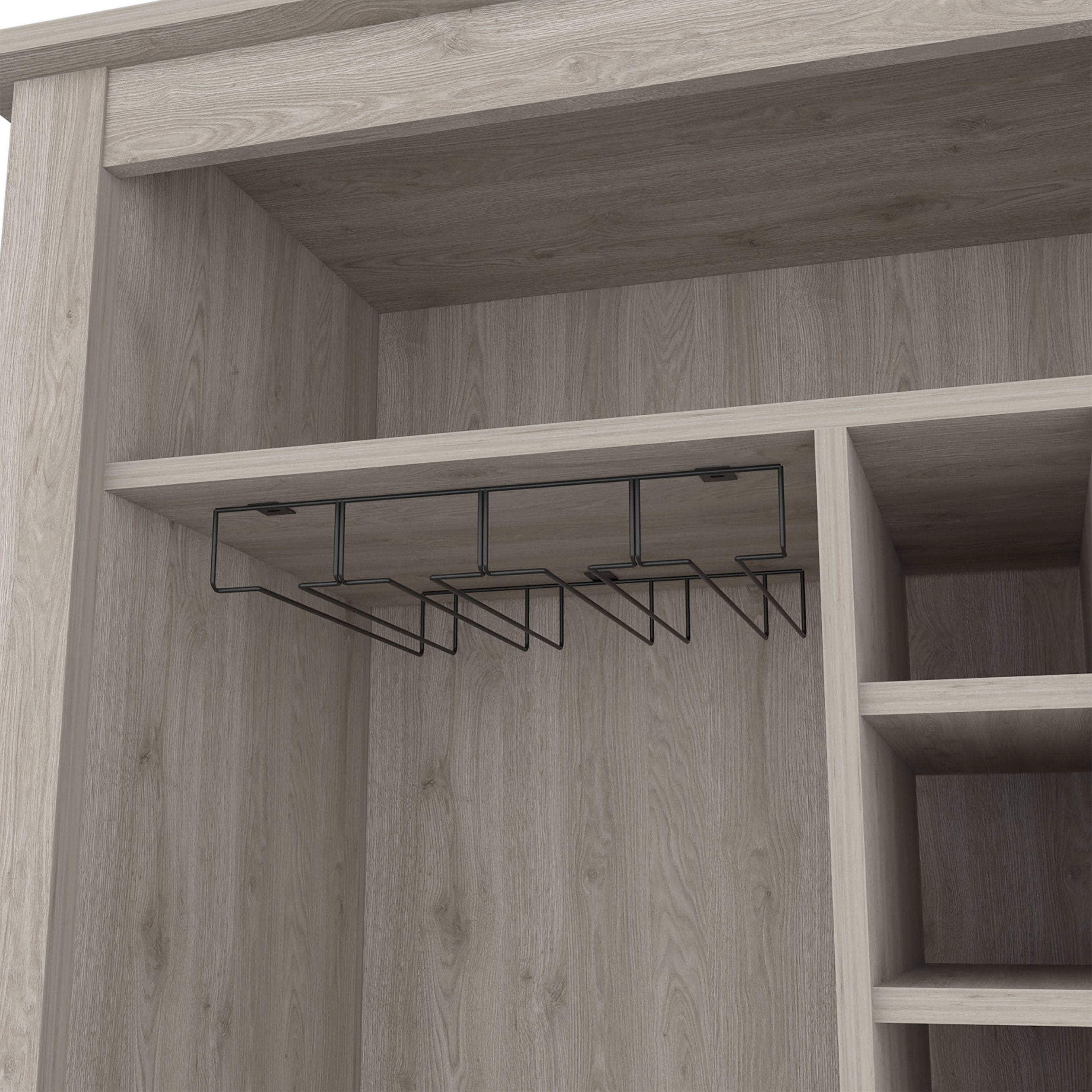Elevate your entertaining and storage with this versatile bar and coffee cart—designed to fit seamlessly into kitchens, living rooms, or dining areas. Finished in light gray, it combines smart organization with a compact footprint, offering dedicated bottle storage, a central shelf with cup holders, and an open top shelf for display or prep space. Durable particle board construction delivers everyday functionality with a clean, modern look.
