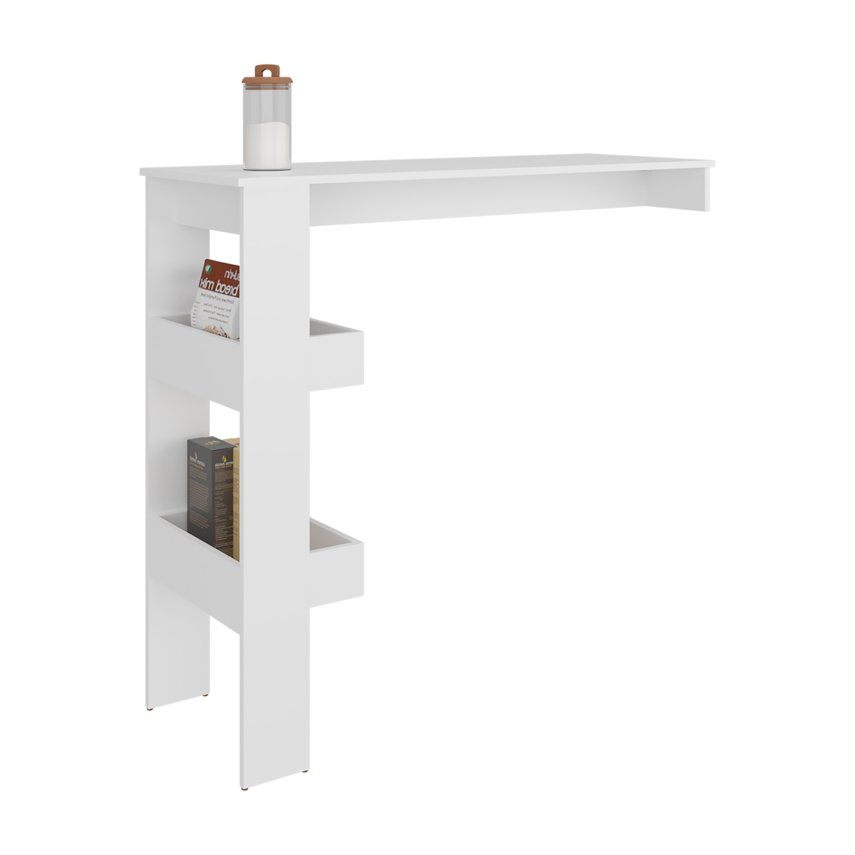 Bring style and smart storage to compact spaces with this sleek white bar table. Its clean finish and slim profile make it a functional focal point for kitchens, dining areas, studio apartments, or home bars, offering organized shelving for glassware, bottles, and decor without overwhelming the room.