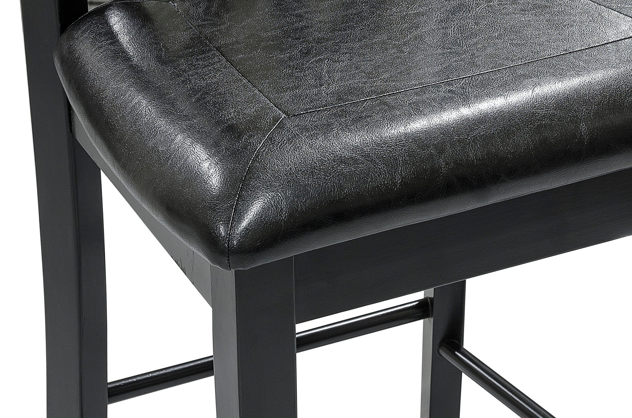 Bring casual, modern charm to your kitchen or eat-in dining area with this five-piece counter-height dining set. The Norman Collection pairs a square counter-height table with four faux-leather upholstered chairs featuring double X-back detailing, creating a versatile look that suits transitional and contemporary interiors. The table’s built-in lower shelves offer convenient storage and display space for dinnerware, cookbooks, or decorative accents—perfect for making the most of compact dining areas.