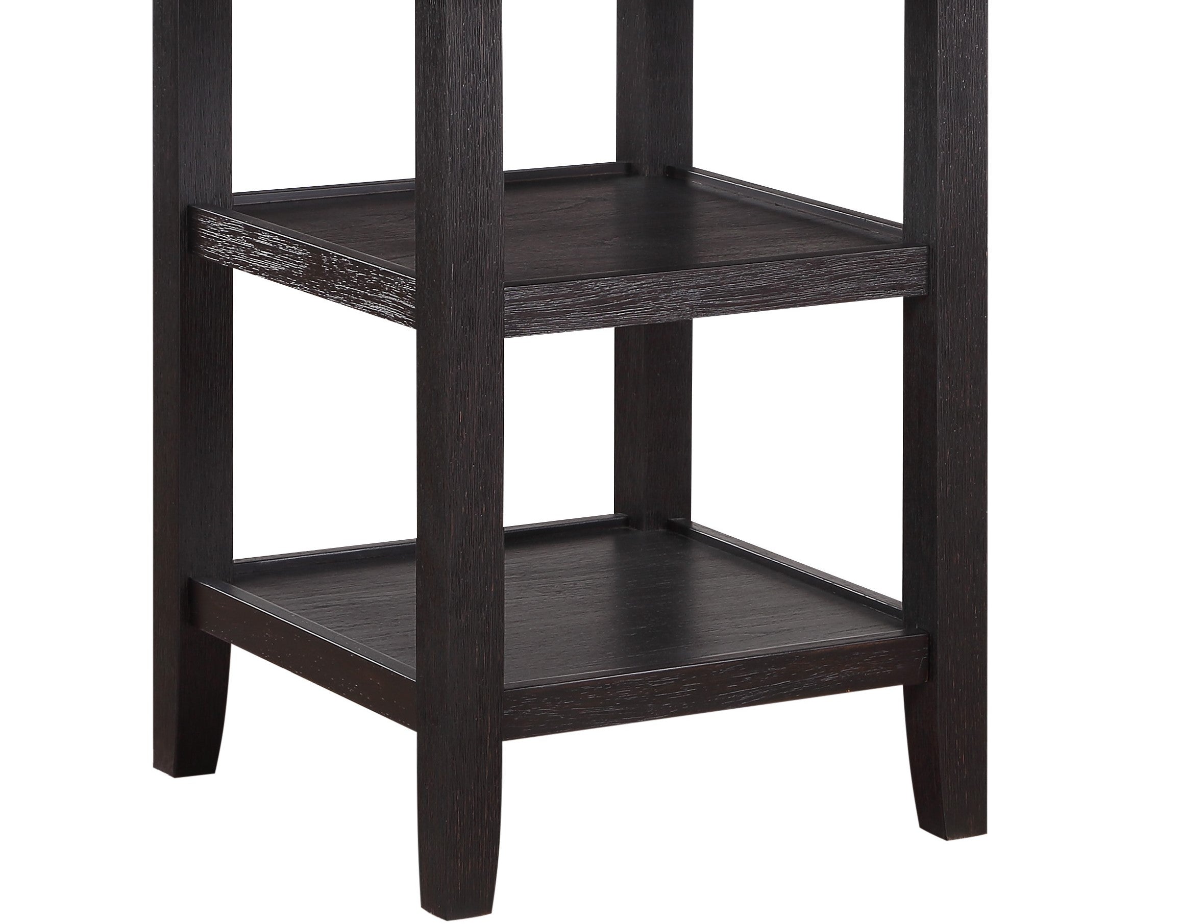 Bring casual elegance to your dining area with this transitional counter-height table from the Asher Collection. Crafted with a brown and black white finish over acacia veneer, the table highlights natural wood grain while offering versatile styling for modern or classic interiors. Its round top and supported base include two display shelves for easy access to tabletop accessories or decorative items, making it both attractive and functional for everyday use or entertaining.