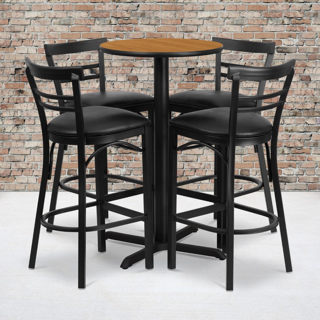 - Set Includes 4 Barstools, Round Table Top, and X-Base