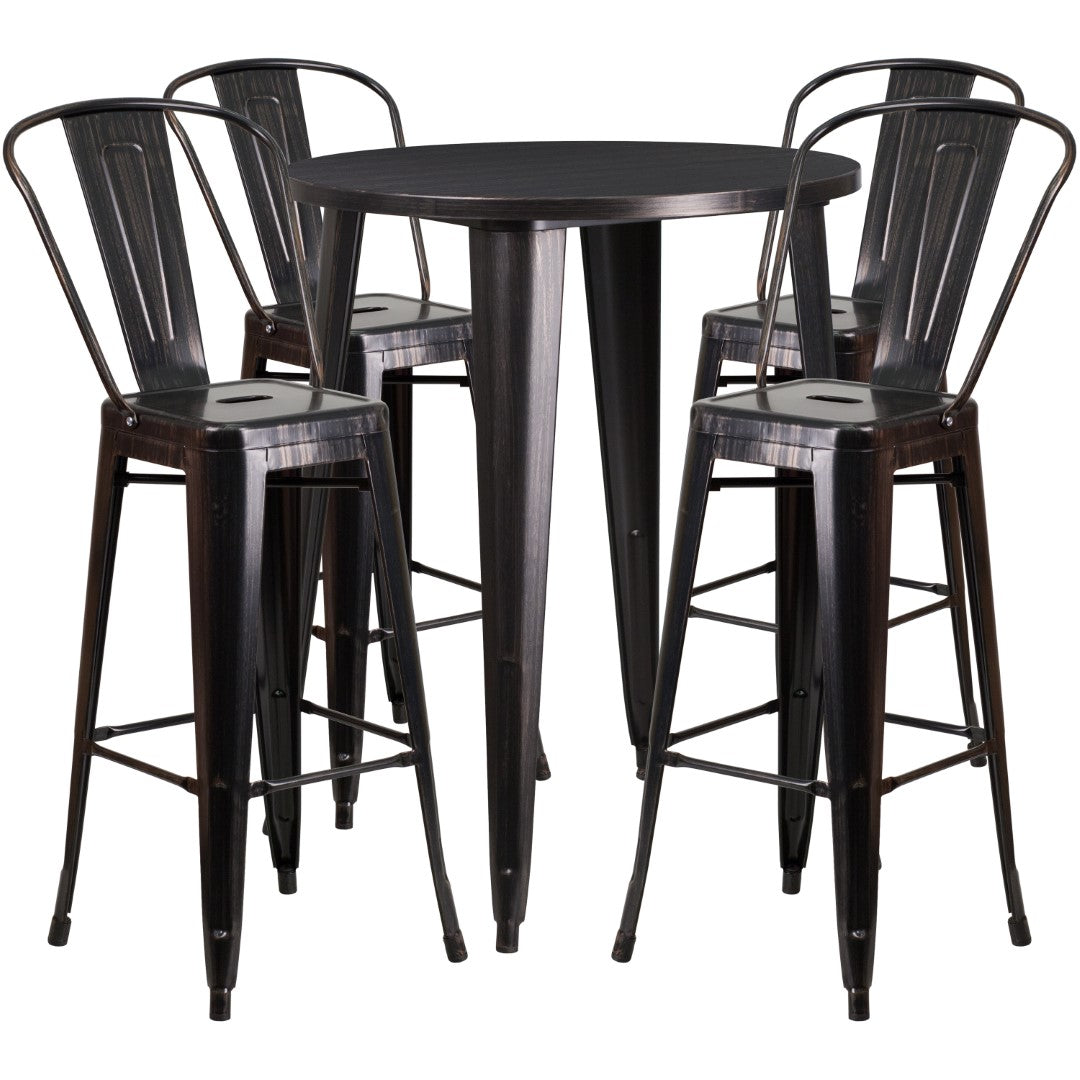 - Bistro Style Barstool with Curved Back and Vertical Slat Design