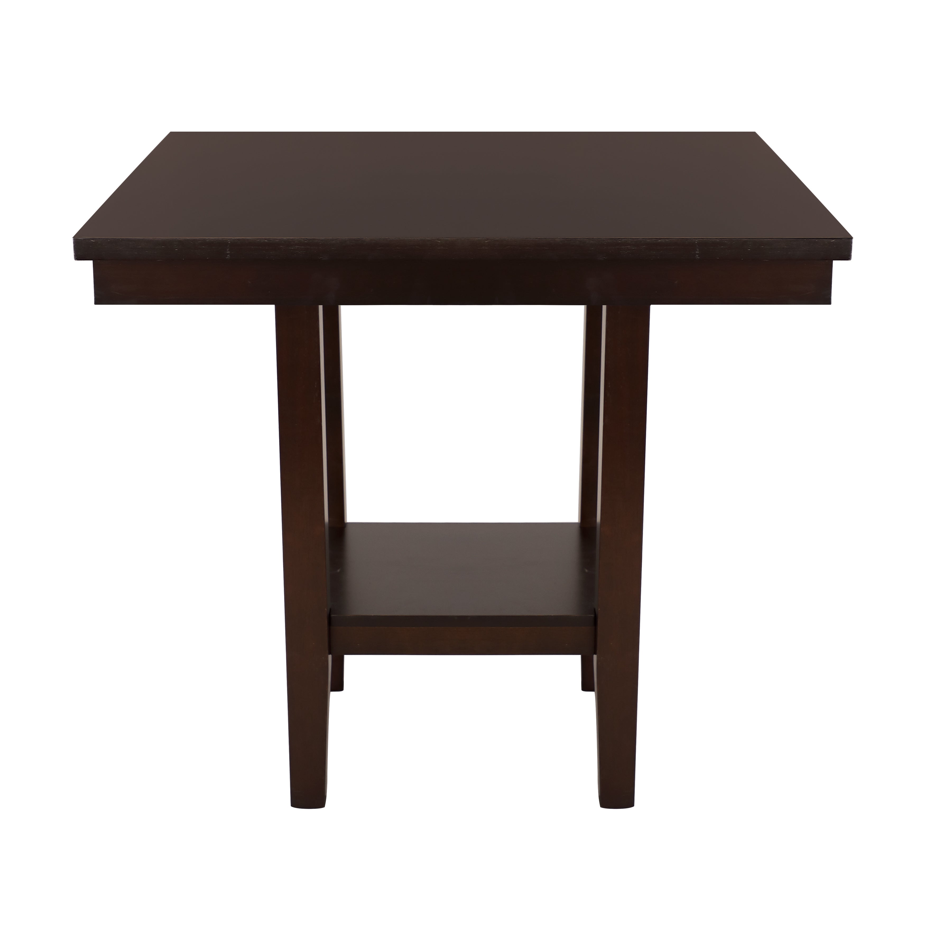 Bring casual elegance and functional storage to your kitchen or rec room with this contemporary counter-height table. Warm espresso birch veneer and a pedestal-style base create a versatile centerpiece for meals, entertaining, or relaxed conversation, while the built-in lower shelf keeps essentials close at hand without cluttering the tabletop.