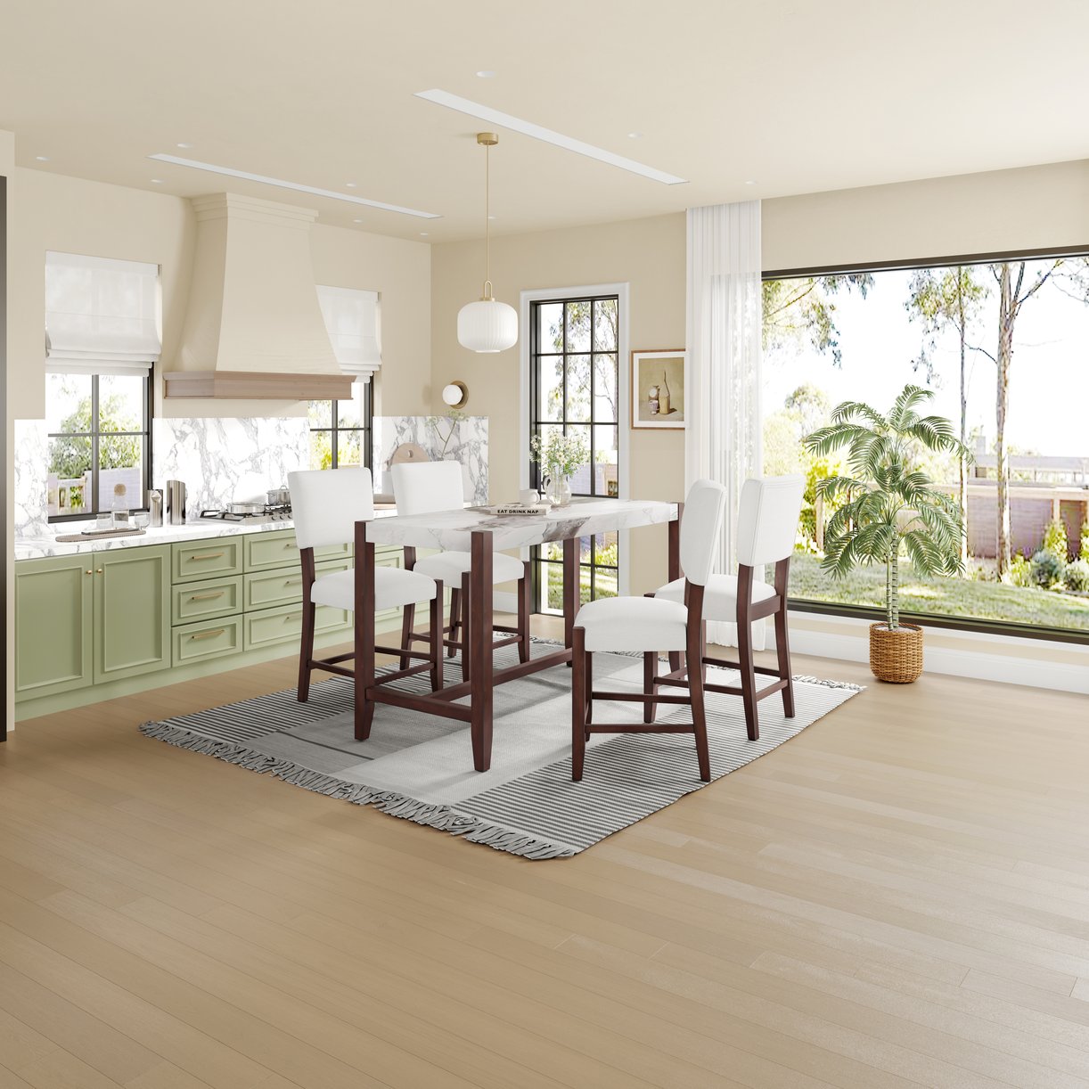 Bring modern elegance to your kitchen, dining nook, or office with this counter-height dining table featuring a chic faux marble top and sturdy rubberwood legs. Its sleek silhouette and durable construction make it ideal for everyday meals, casual gatherings, or as a stylish workspace. Designed for easy assembly and low-maintenance care, this table pairs seamlessly with bar stools or counter chairs to create a contemporary focal point in any room.