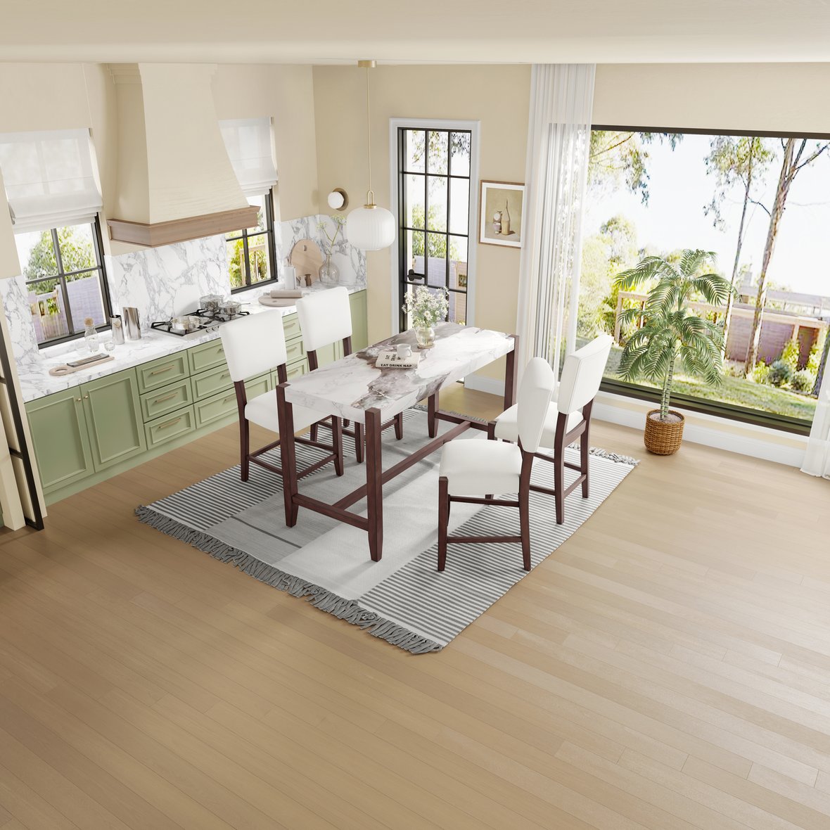 - Materials: Faux marble MDF tabletop for a premium look with easy upkeep; solid rubberwood legs for reliable stability.