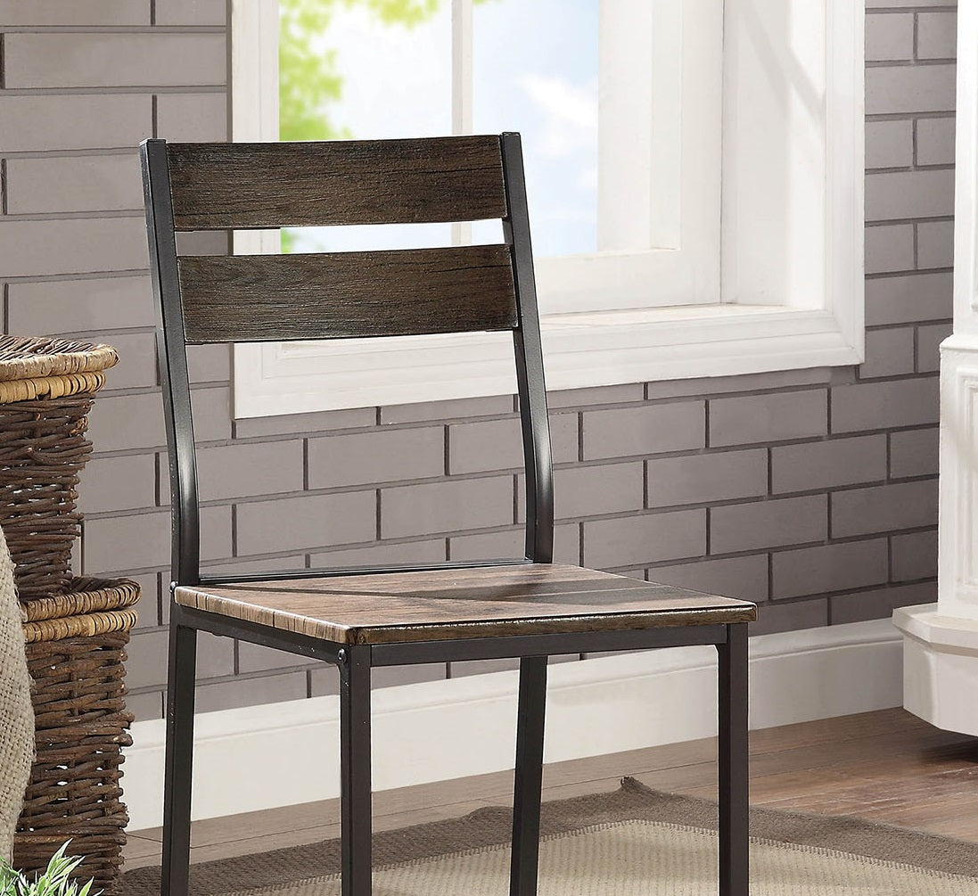 Bring rustic-industrial charm to your dining area with this 5-piece counter-height set. Combining a sturdy metal frame with a warm, weathered wood finish, the set offers casual comfort and long-lasting support—ideal for family meals, small gatherings, or a stylish breakfast nook. The reclaimed-look surfaces and contrasting black metal accents create an inviting, vintage-inspired aesthetic while remaining practical for everyday use.