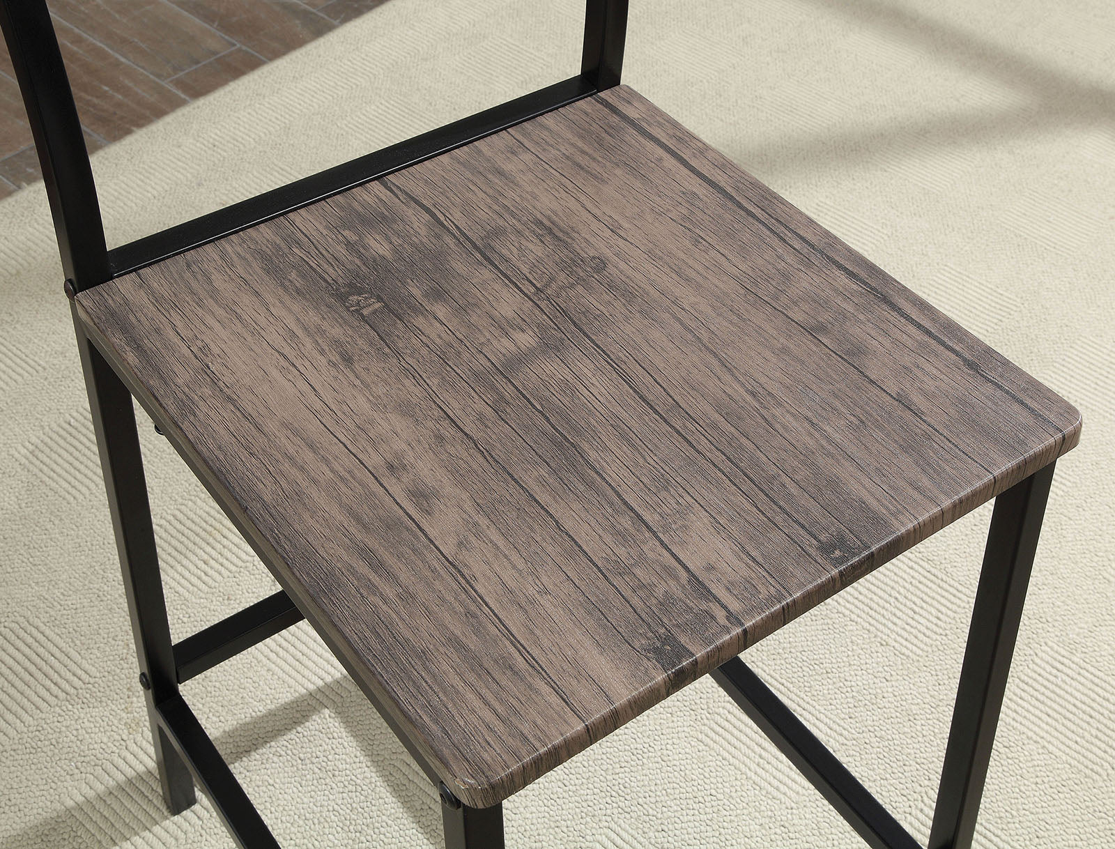 - Materials: Powder-coated metal frames with natural wood grain tabletop and wooden chair seats for durability and easy maintenance