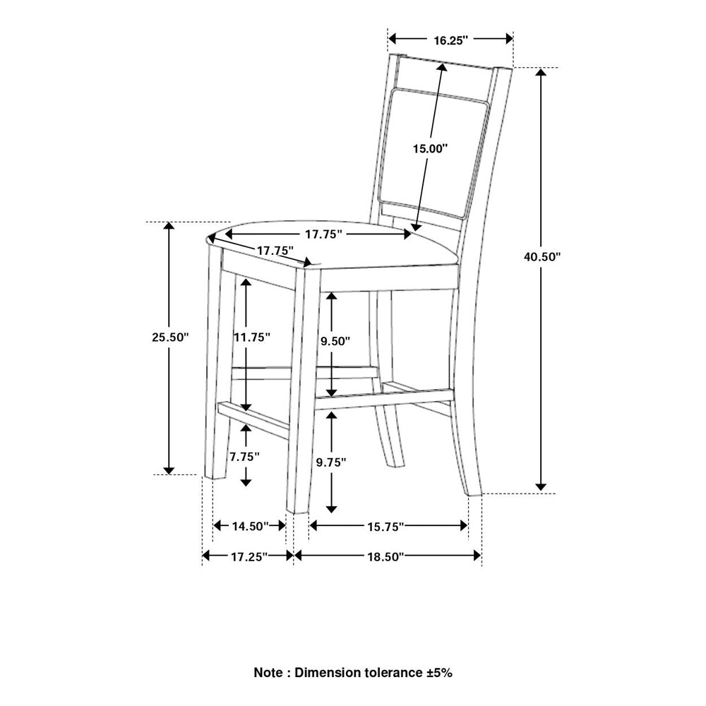 - Chair dimensions: 40.5" H x 18.25" W x 20.75" D — counter-height seating with cushioned faux leather upholstery in rich brown for comfortable support and easy maintenance.