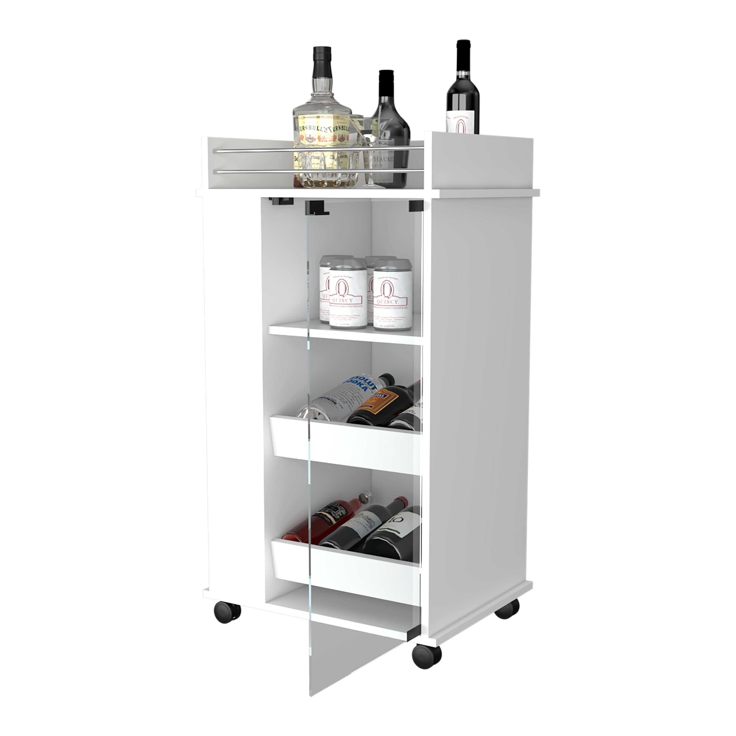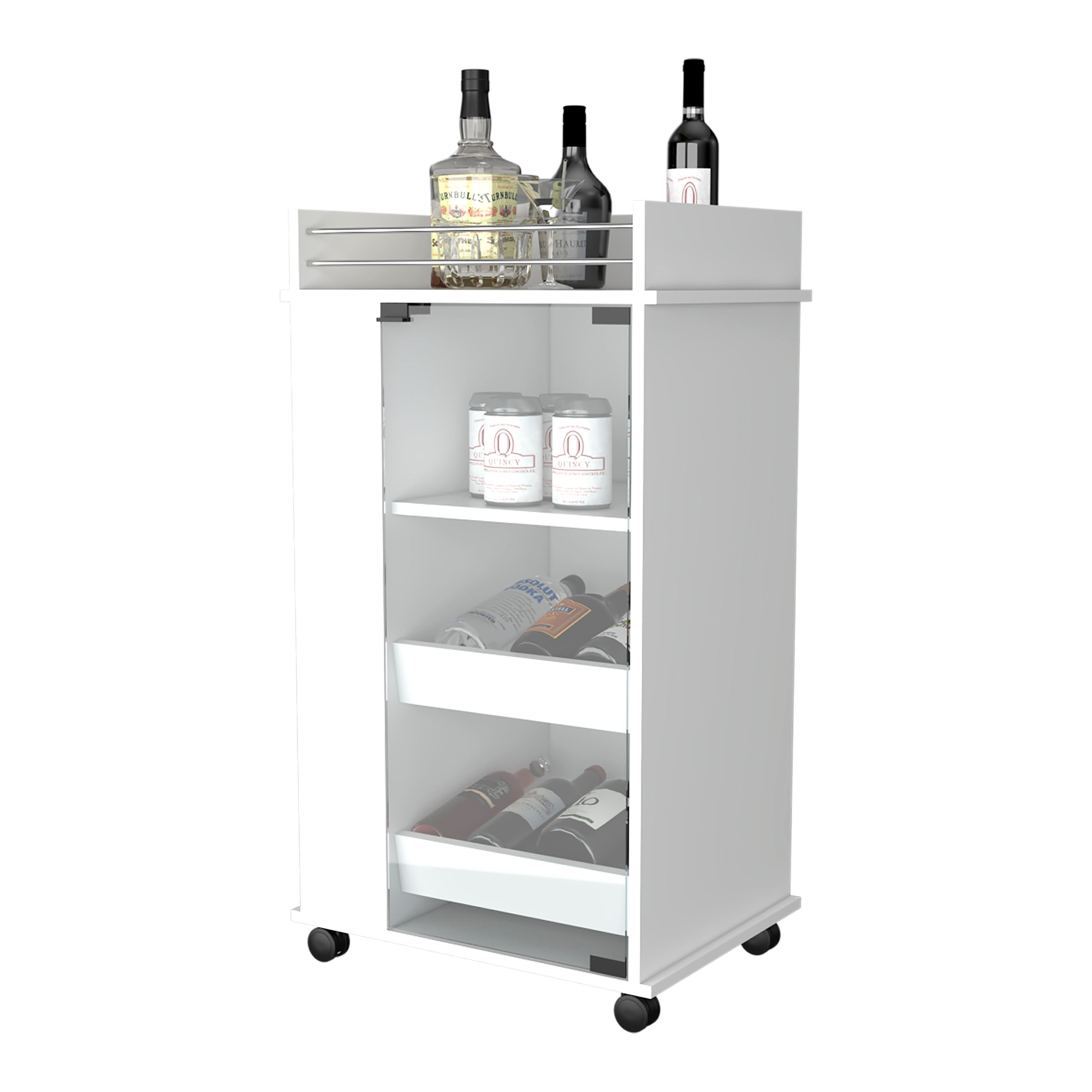 Elevate your home entertaining with the Lusk Bar Cart — a stylish, compact solution that combines mobility, organized storage, and a clean white engineered-wood finish. Designed to serve as a drink station, display surface, and mobile serving cart, it keeps bottles, glassware, and bar tools neatly arranged while rolling easily to wherever the party leads.