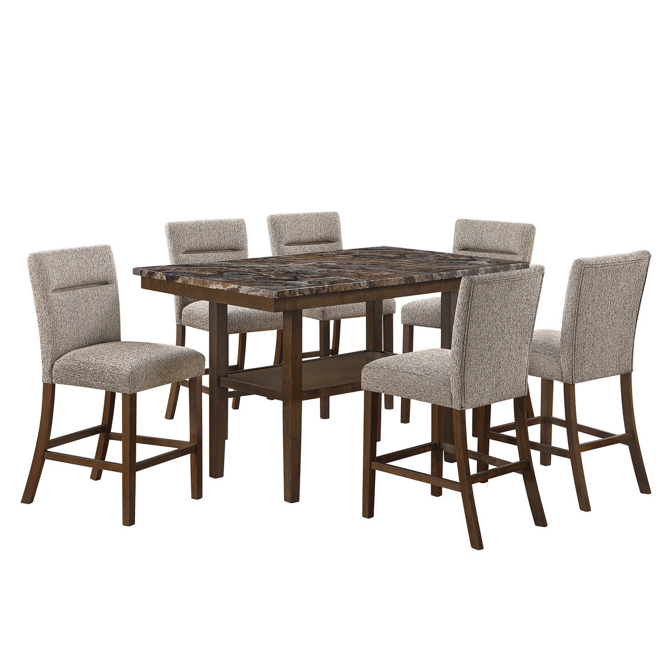 Elevate your dining or entertaining space with the Marcello Brown Bar Table — a contemporary statement piece that pairs warm wood tones with a sleek faux marble surface. Thoughtfully designed for both style and function, this table offers sturdy construction and practical storage, making it ideal for casual meals, cocktails, or as a centerpiece in a modern kitchen or bar area.