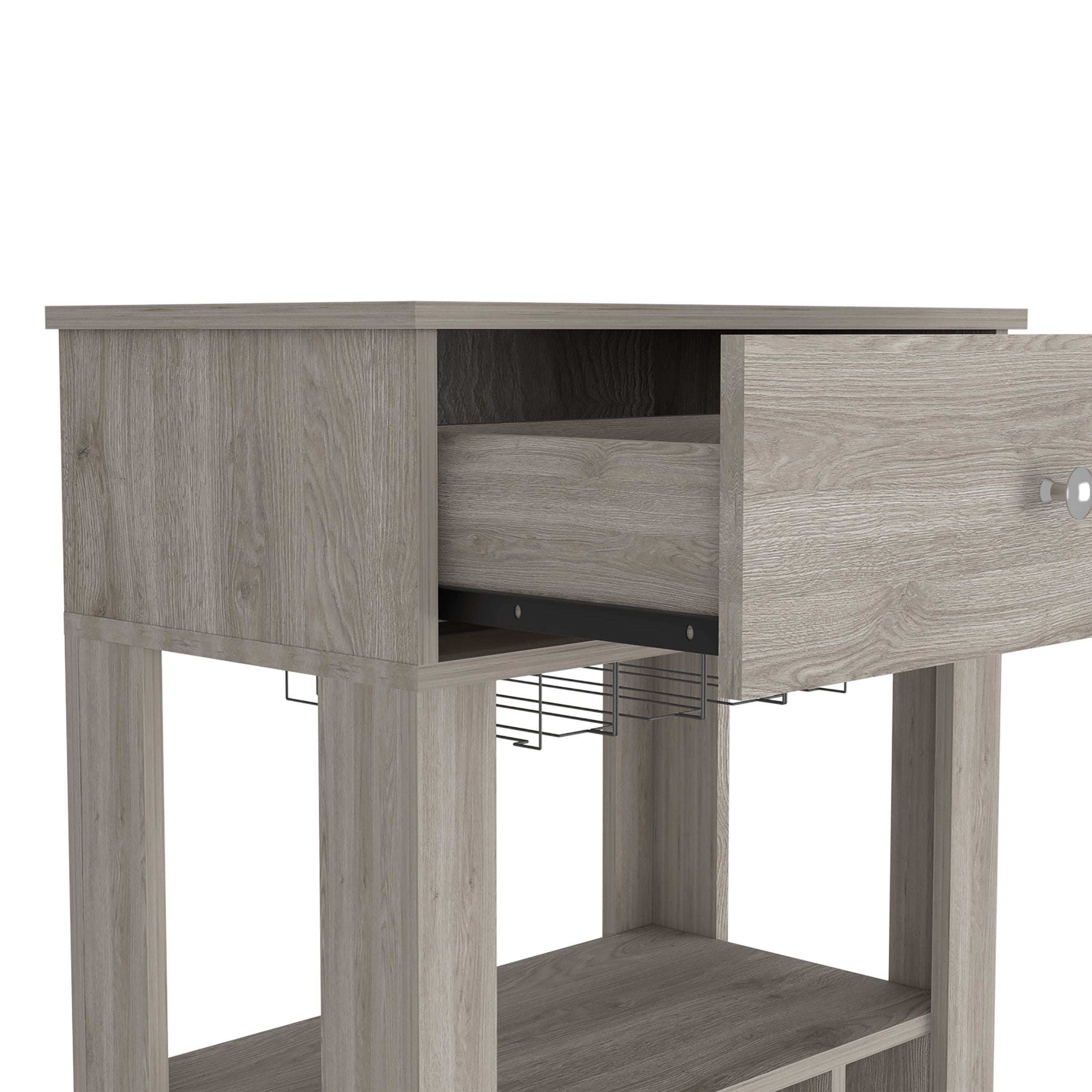 Bring effortless style and practical storage to your entertaining space with this contemporary light-gray bar cart. Designed for both form and function, it keeps bottles, stemware, and bar essentials neatly organized while offering mobility and a streamlined silhouette that complements modern interiors.