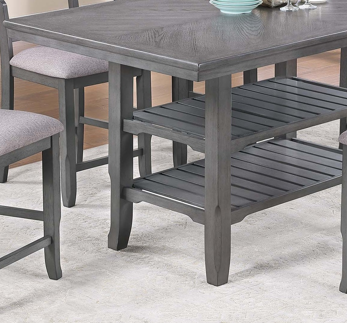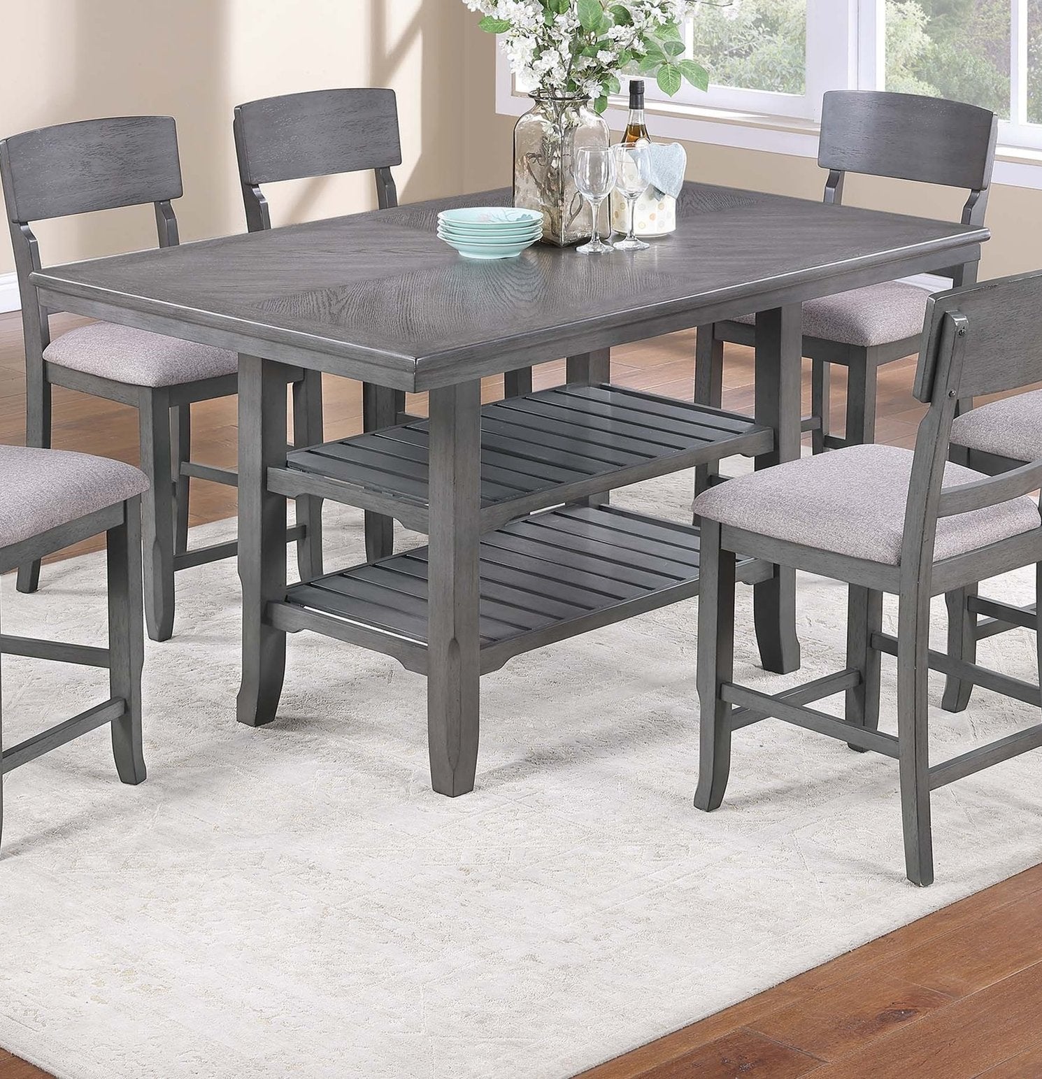 Bring contemporary style and everyday functionality to your dining space with this counter-height rectangular dining table. Designed to seat up to six, it combines a modern silhouette with practical storage so meals and gatherings stay comfortable and clutter-free. The gracefully curved leg ends and two under-table shelves create an elegant yet useful centerpiece for casual dinners or entertaining.