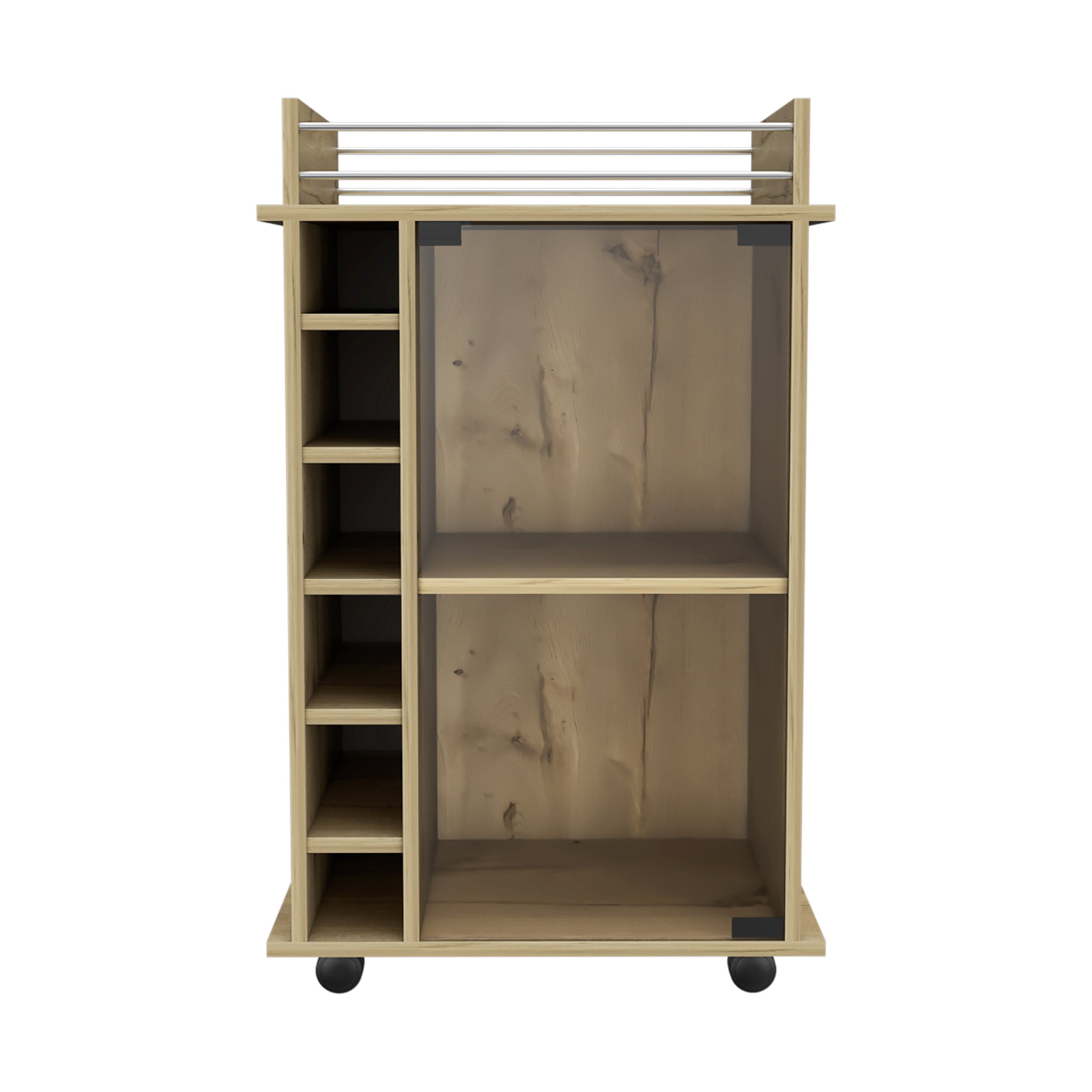 Elevate your entertaining space with a stylish and functional bar cart that blends storage, display, and mobility. Designed in a rich Carbon Espresso finish with a glass-front door, this compact cart organizes bottles, glassware, and decor while adding a refined focal point to your living area, dining room, or home bar.