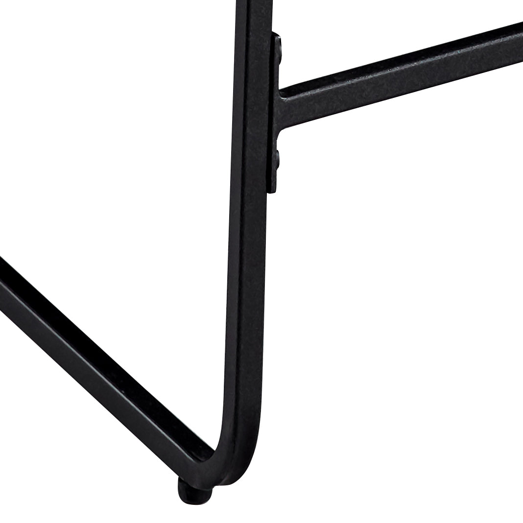 - Counter height set constructed of iron components, medium-density fiberboard and laminated melamine veneers
