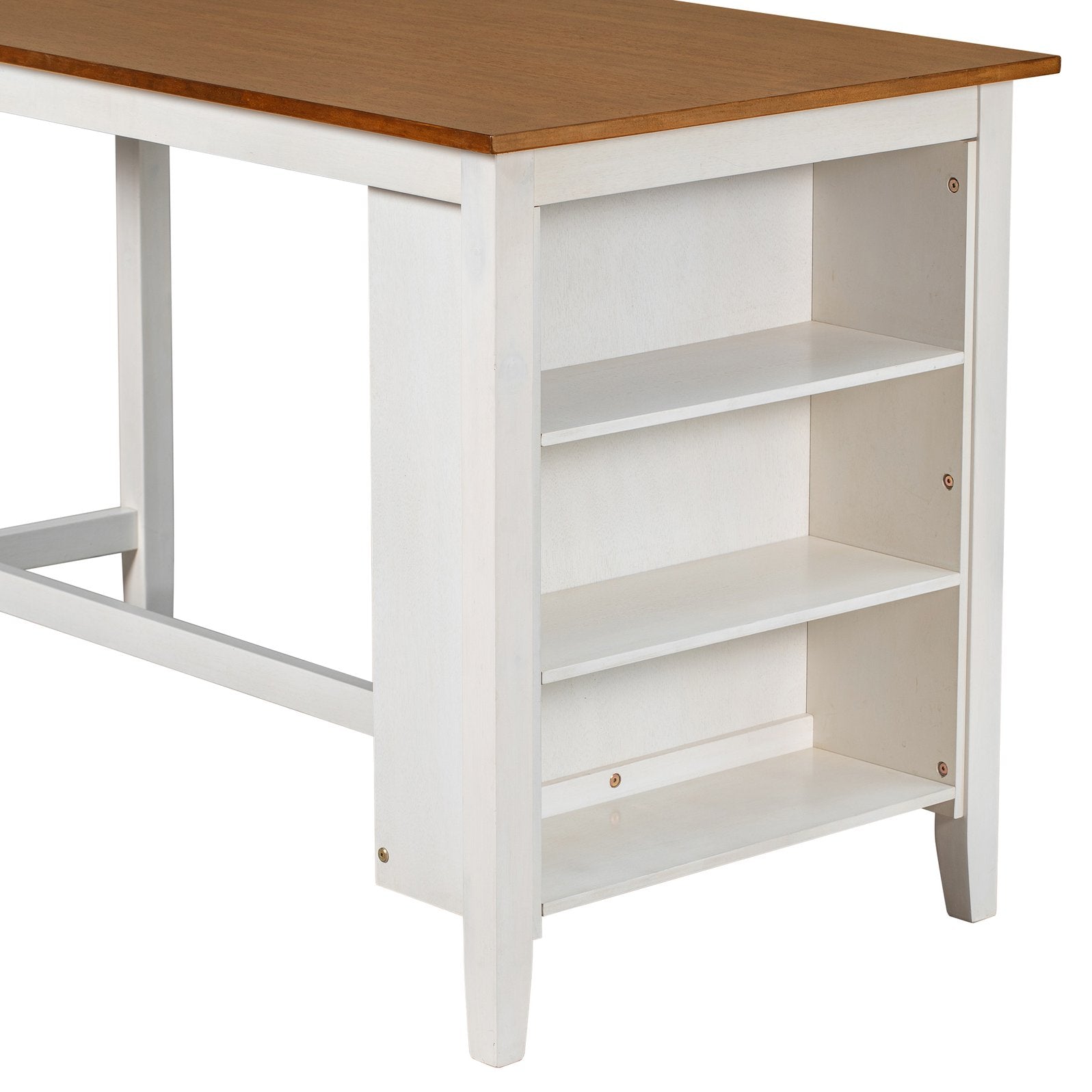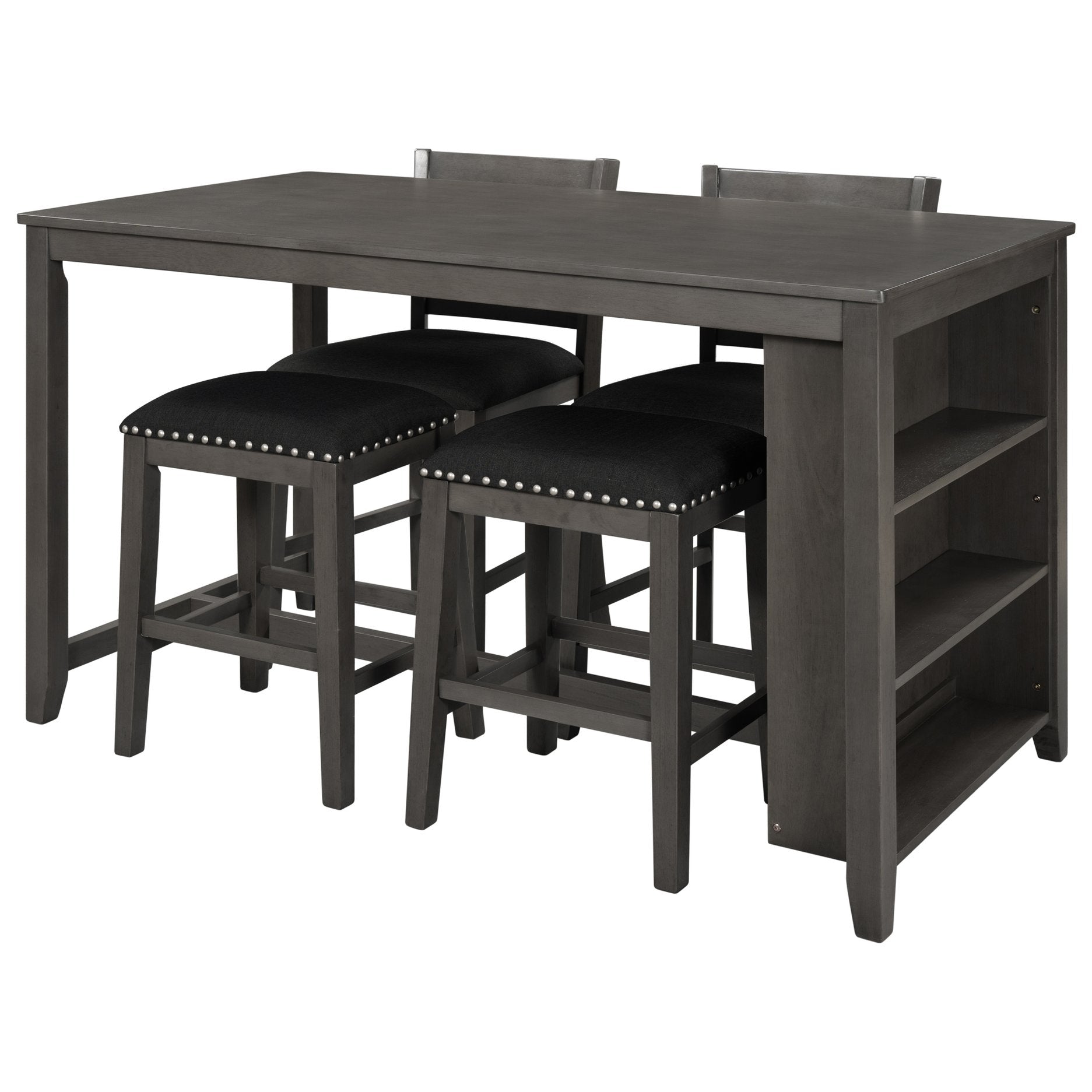 - Storage & space-saving: Built-in 3-tier shelving on the table offers convenient storage for dishes, bottles, or display items; chairs and stools tuck neatly under the table when not in use.