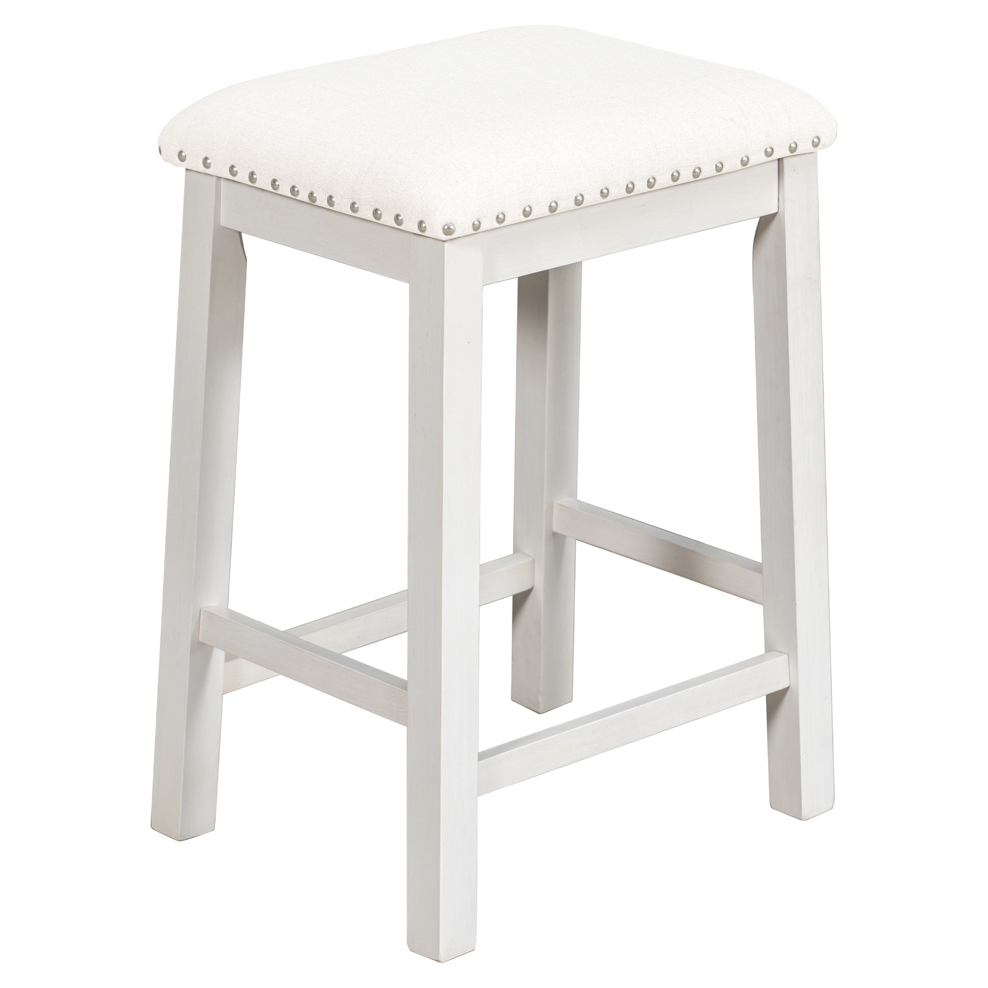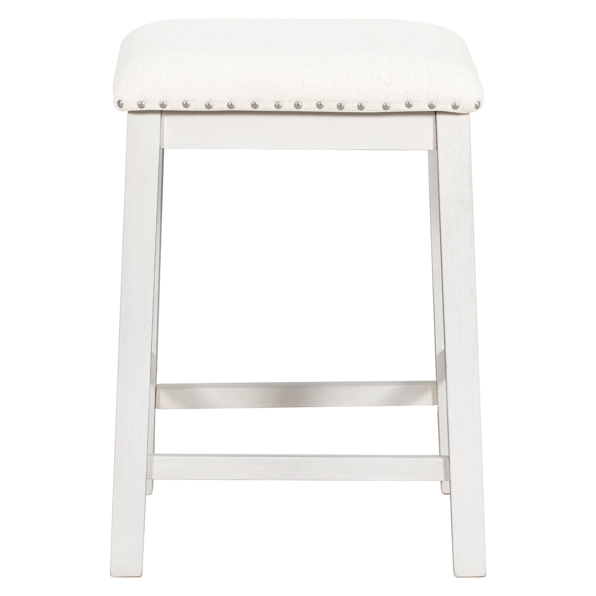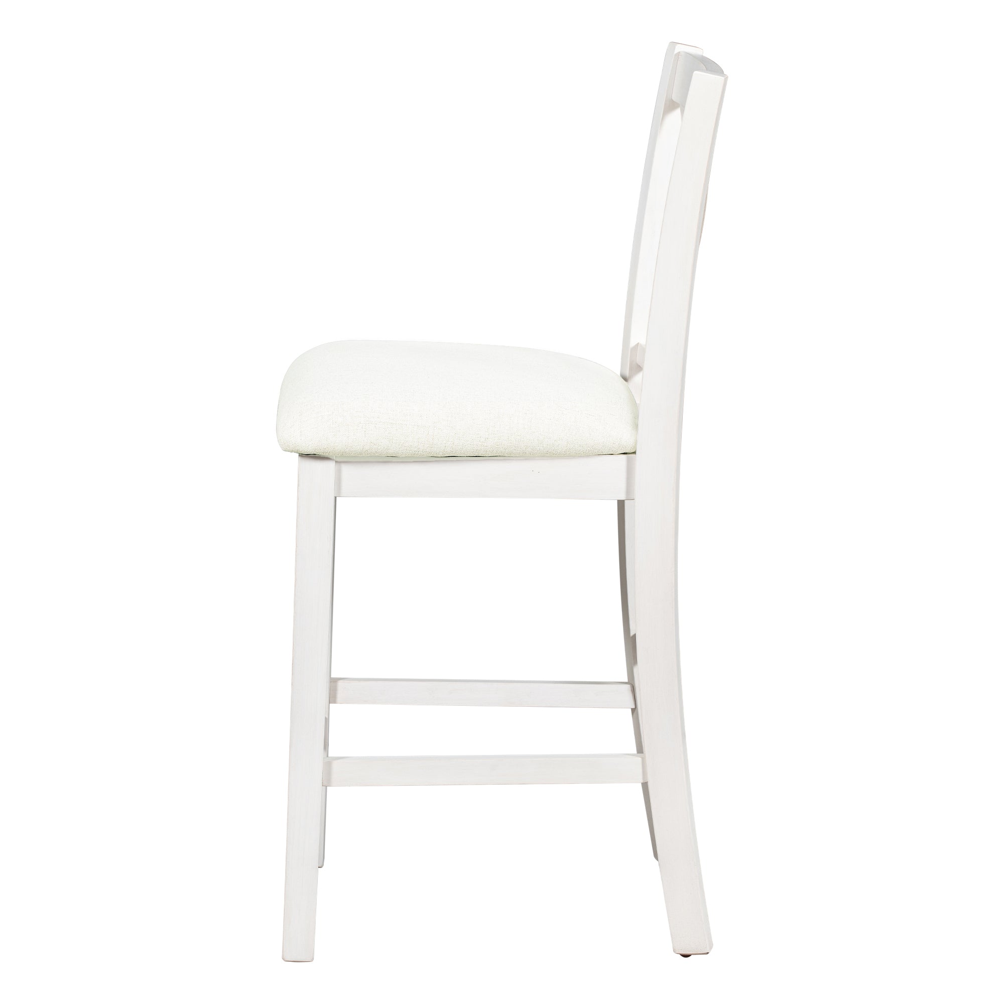 Bring farmhouse charm and practical design to your kitchen or dining nook with this counter-height 5-piece dining set. Crafted with a warm walnut tabletop, white painted frame, and beige upholstered seats, the set includes a sturdy counter-height table, two cushioned chairs and two stools. Thoughtfully designed storage and stackable seating make it ideal for everyday family meals and casual entertaining in compact spaces.