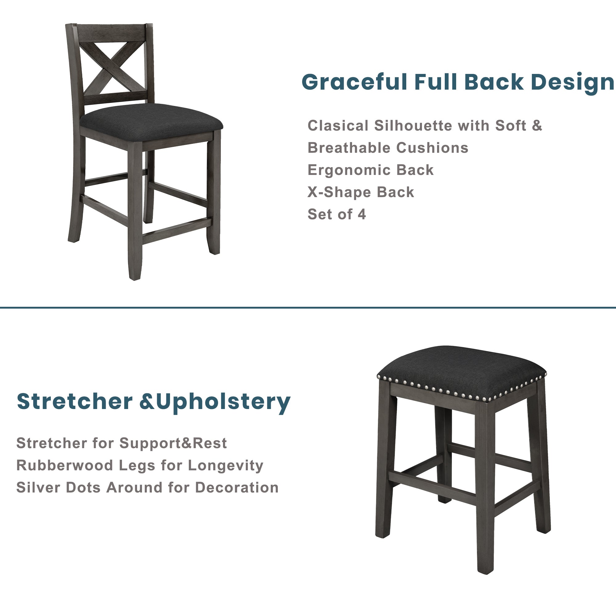 - [Expert Craftsmanship] Built with solid rubber wood with MDF veneer, the kitchen table set is highly durable with stability for long time using. The table top is easy to clean with its water-resistant and oil-resistant nature. X backs and plushly upholstered seat cushions in linen fabric make it enjoyment to own this set.