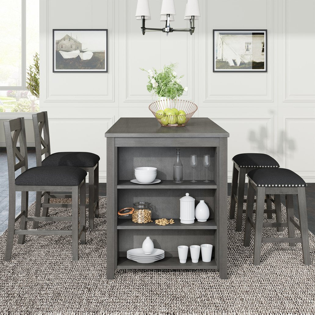 - [Space-saving Solution] Worried about lots of odds and ends? Built-in functional storage in this set offers a practical solution for you. With a 3-tier shelf, dishes, bottles and other stuff have their own places while keeping them in handy. All of chairs and stools can also be stacked under table easily to release more room.