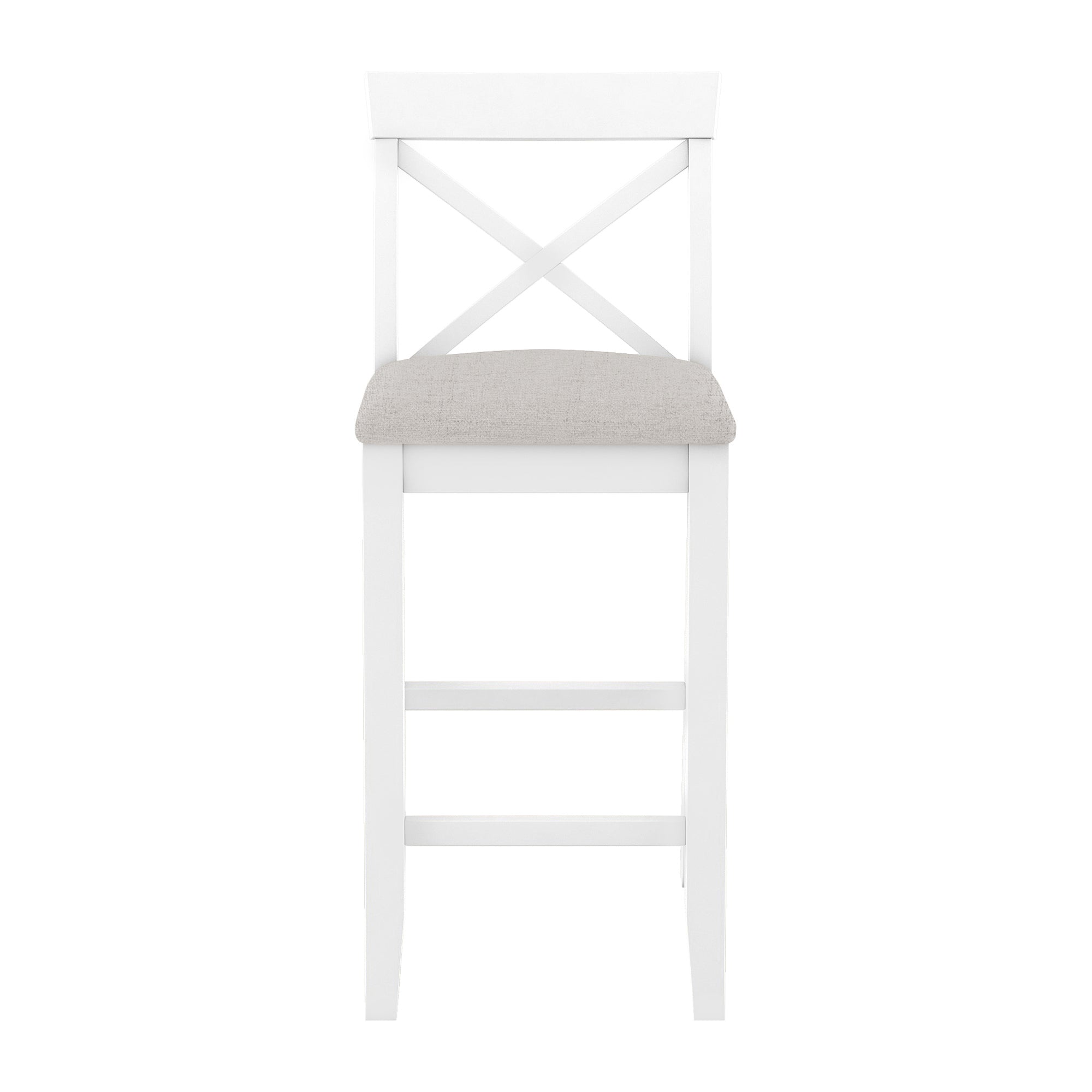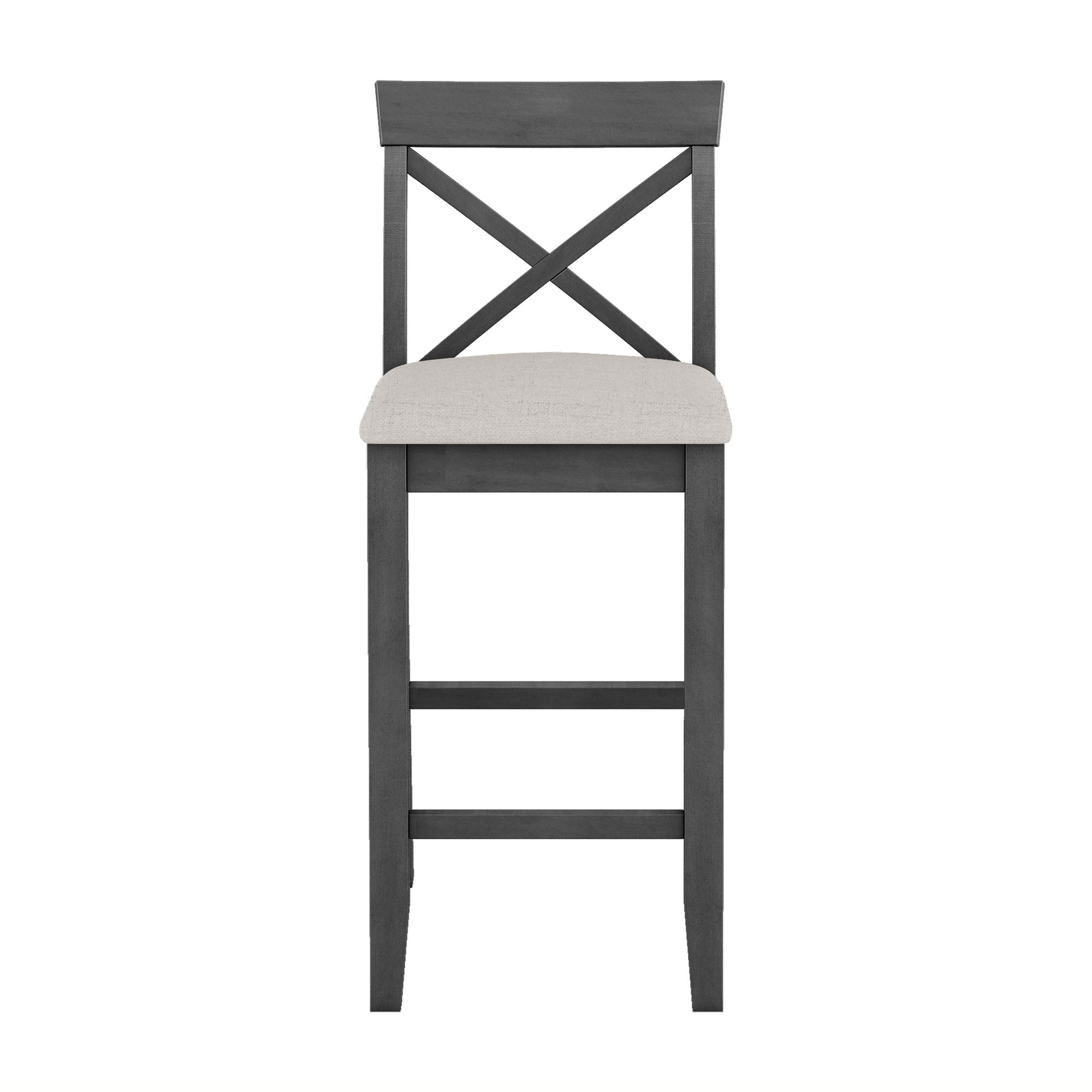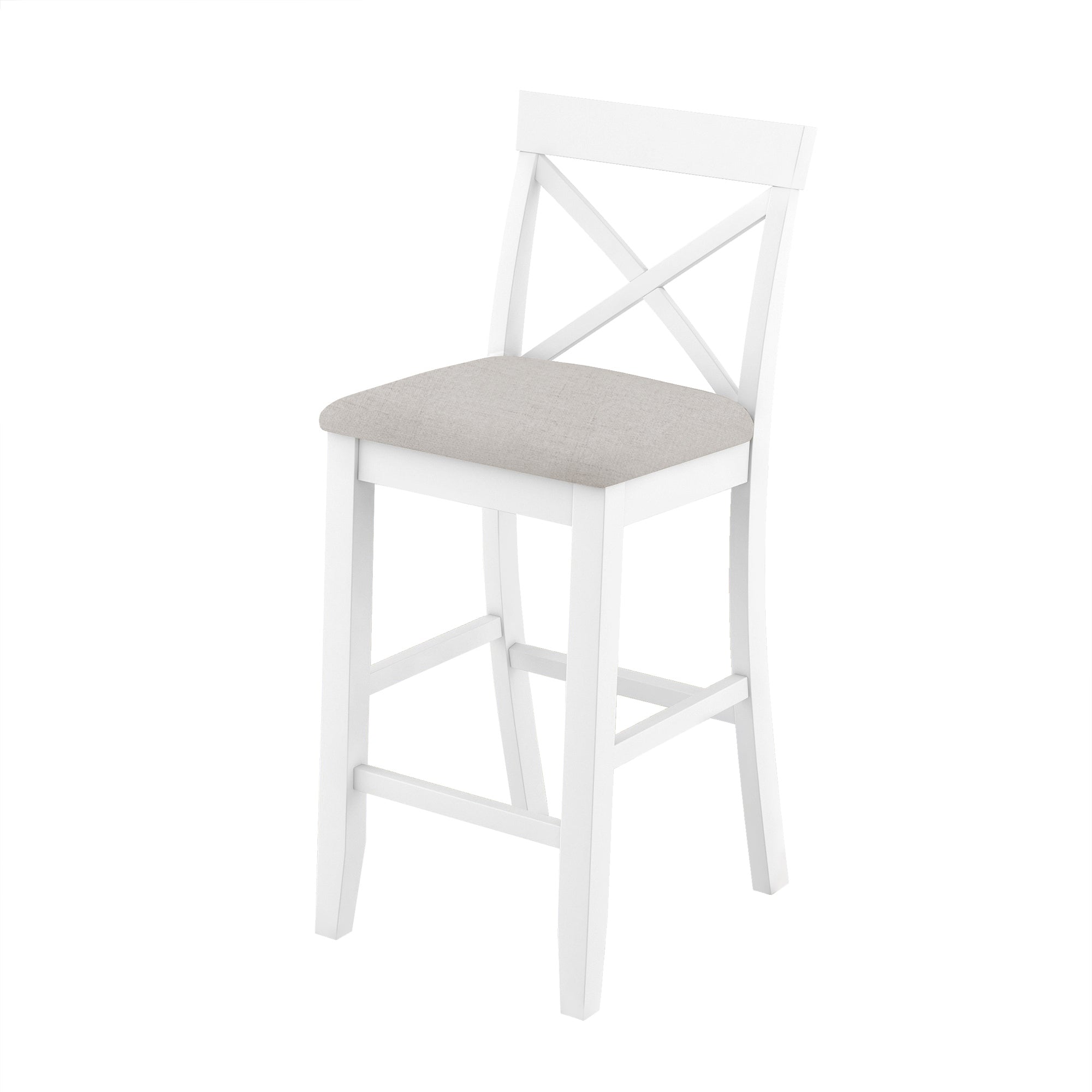 Enjoy relaxed, rustic charm in a compact footprint with this 3-piece farmhouse bar-height breakfast set—perfect for small kitchens, breakfast nooks, or multifunctional living spaces. The clean lines and muted gray frame paired with beige linen cushions create an inviting, contemporary farmhouse look while the tall, space-saving profile lets chairs tuck neatly under the table when not in use.