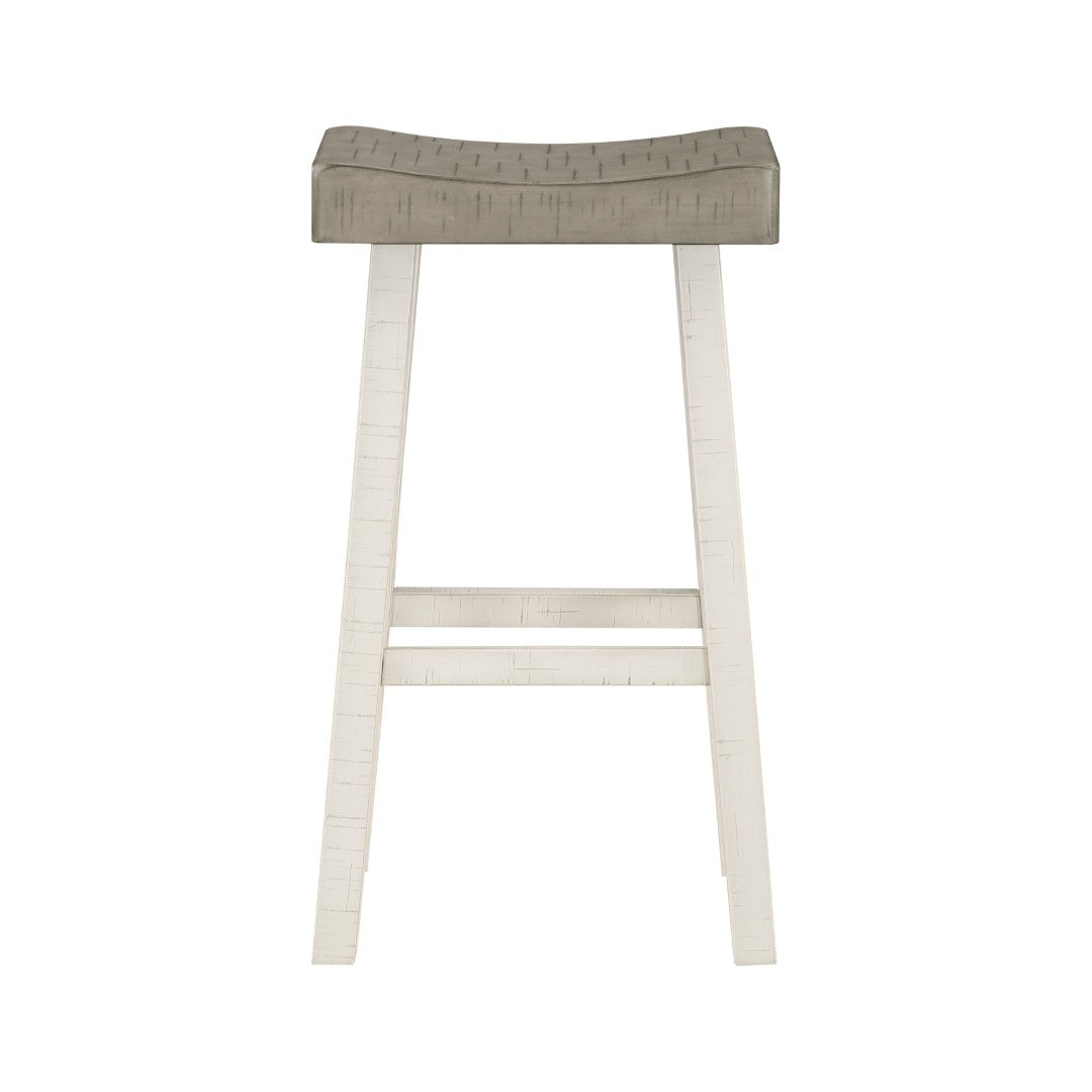 Bring effortless charm and everyday function to your casual dining area with this transitional 4-piece pub-height set. The two-tone white and coffee finish, rusticated accents, and subtle profile create a relaxed yet refined look that fits coastal, farmhouse, or modern-traditional interiors. Built from solid rubberwood, the set includes one 42" bar-height table and three contoured-seat bar stools designed for comfortable conversation and easy maintenance.