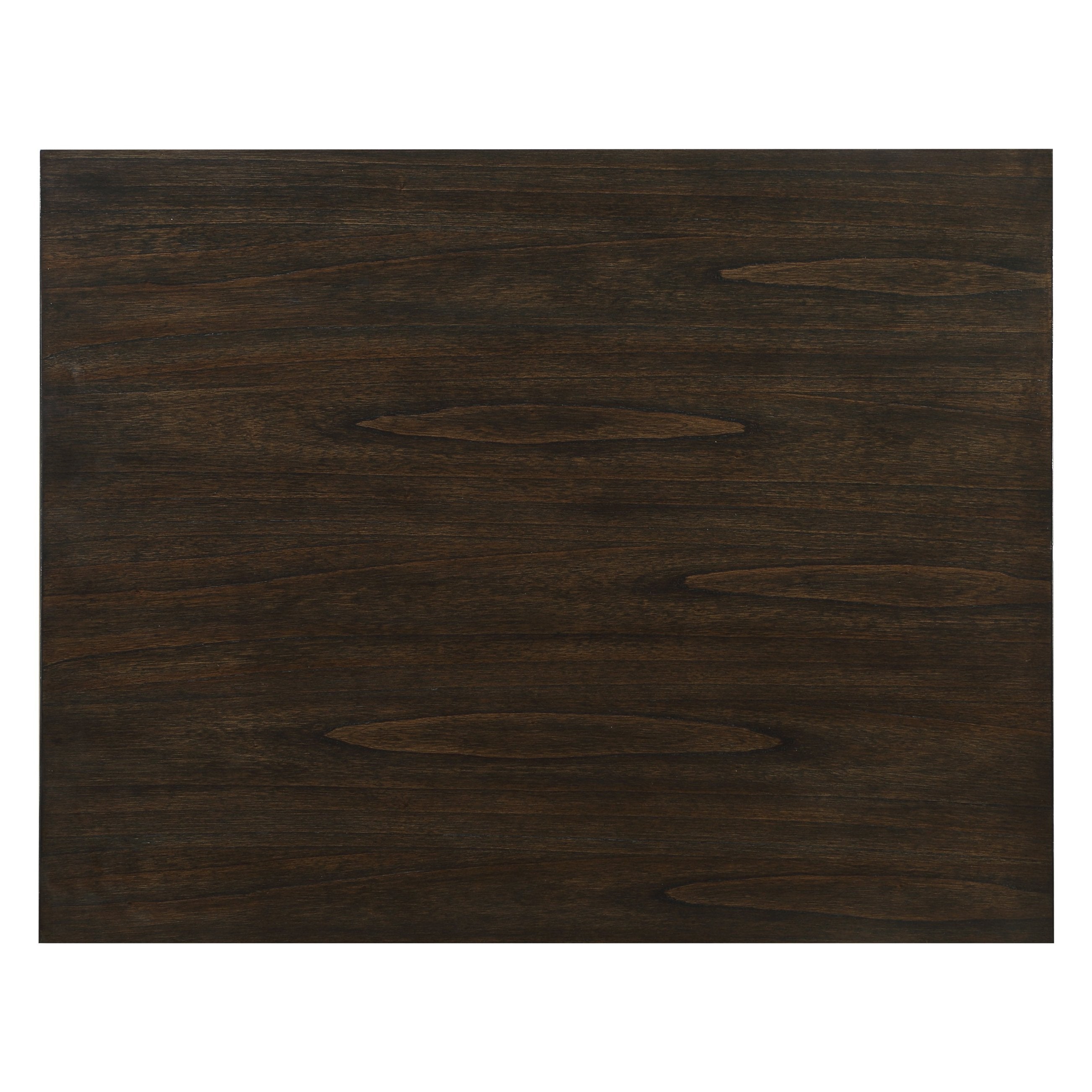 - Finish & materials: Burnished dark cherry Mindy veneer top with wood-framed chairs; brown fabric upholstered low-back seats for neutral styling