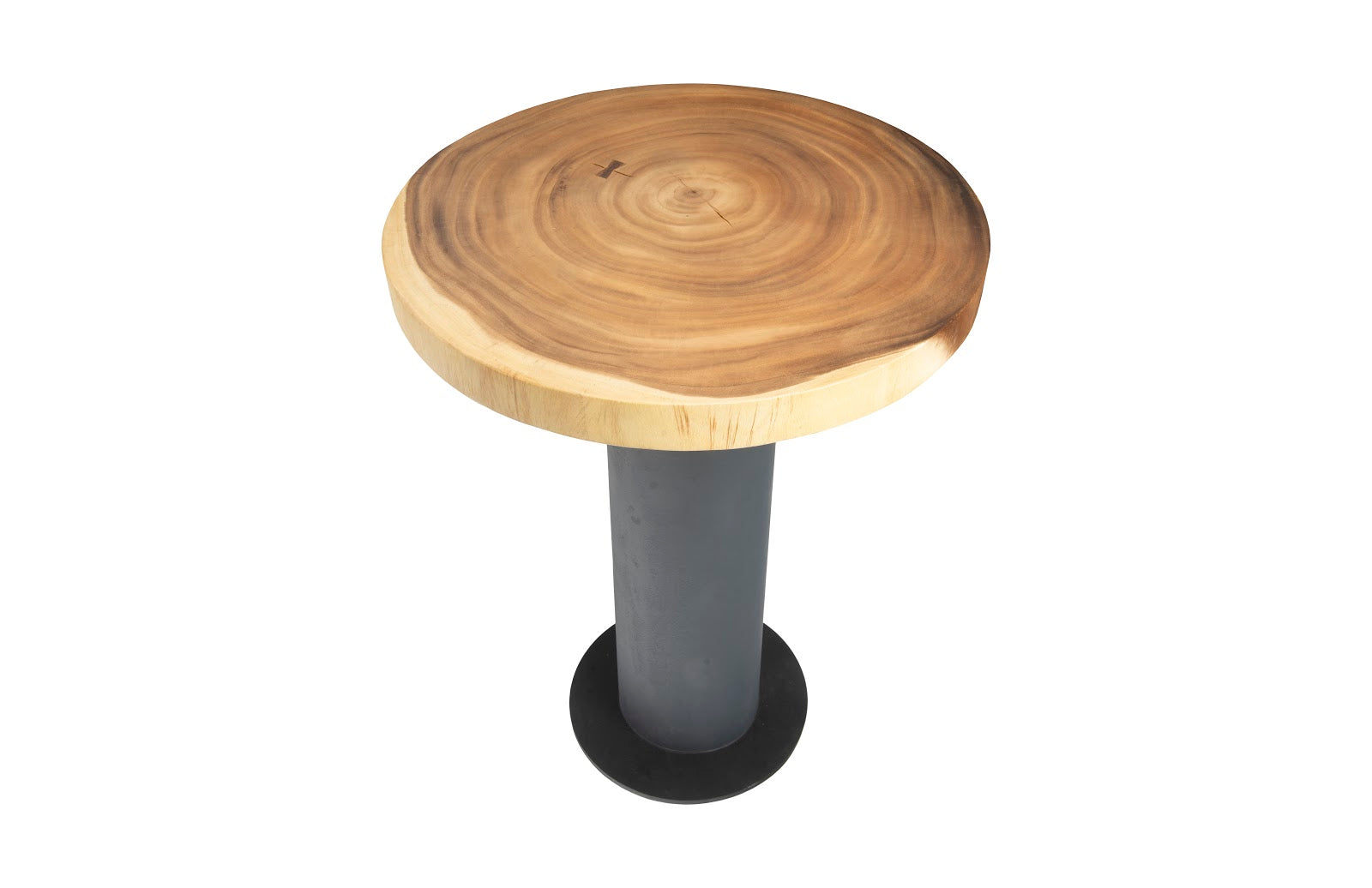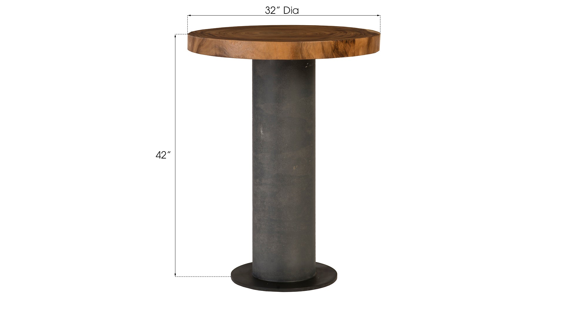 We at Phillips Collection are known for our furnishings in personable chamcha wood, a golden acacia that we responsibly source from the jungles of Asia. The top on our Concrete and Chamcha Bar Table is one of the pieces we’ve rescued from being one of nature’s finest castaway by making it into an elemental design statement. Several design distinctions of note on this bar table are the natural graining of the wood, the textural beauty of the rings on the top that illustrate the life of the tree, and the sleek juxtaposition of the slim concrete column on which it sits. This round bar table reflects the ethos that Phillips Collection personifies: modern organic.