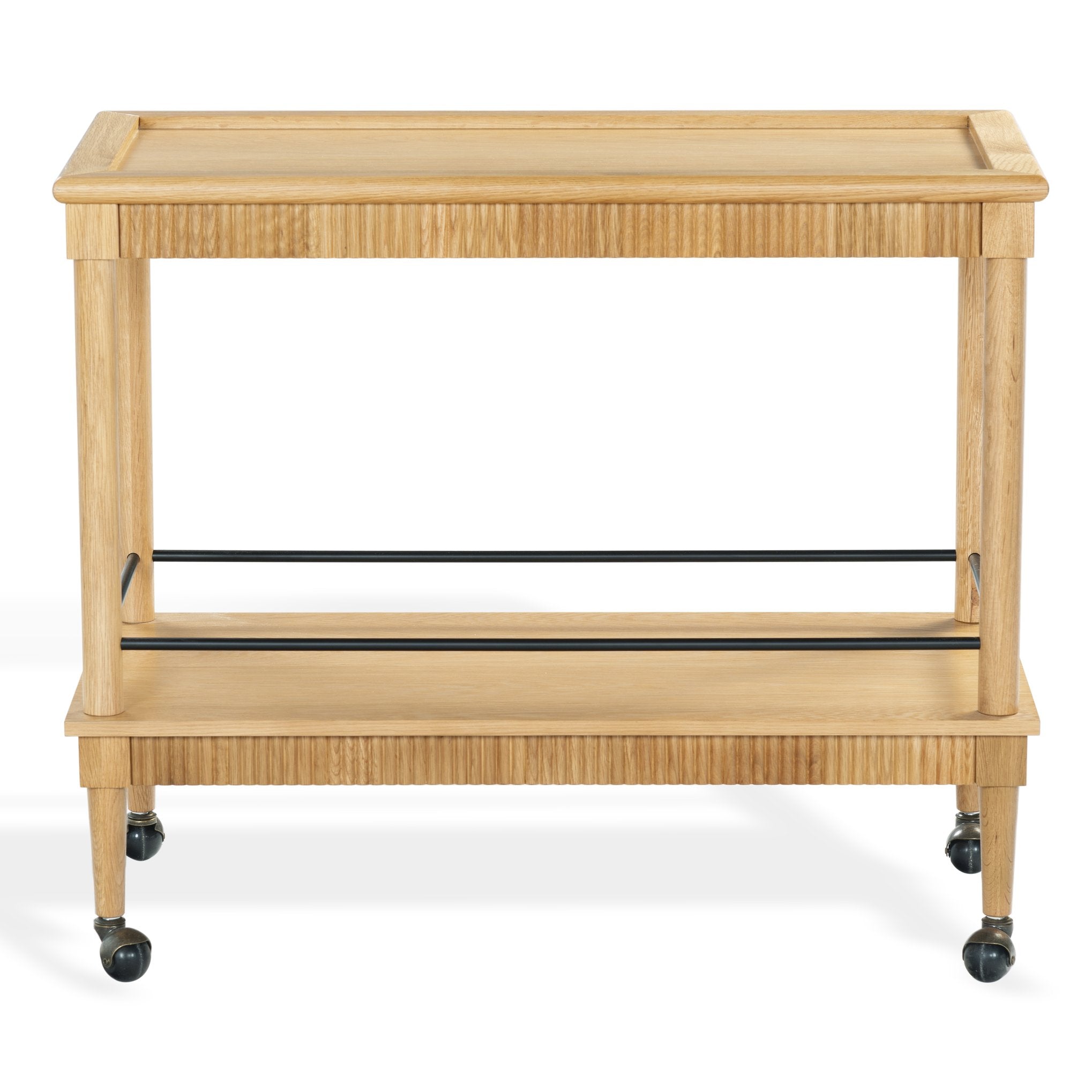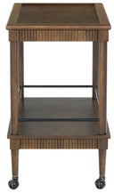 Its smooth wheels ensure mobility, allowing you to serve your guests with ease. Whether used for a festive gathering or a quiet evening at home, this barcart adds a sophisticated touch to any occasion. The fusion of wood and metal not only brings a warm aesthetic but also offers sturdy support for your collection. Celebrate every moment with a touch of natural charm at your fingertips. Elevate your hosting experience with the Donnabrielle Wood 2 Shelf Barcart, a perfect blend of style and comfort in one stunning piece.