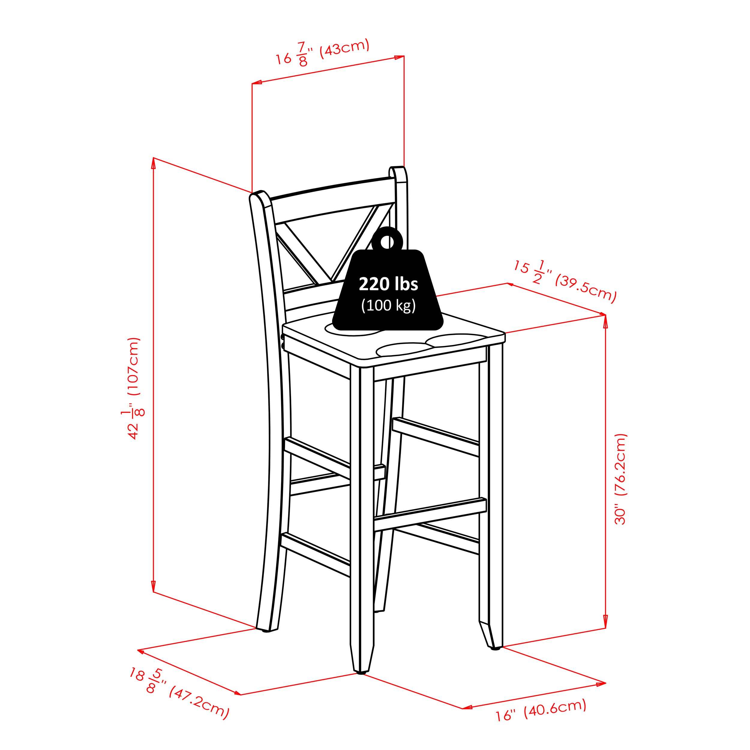 - Includes 2 V-Back Bar Stool 16.93"W x 19.21"D x 42.16"H