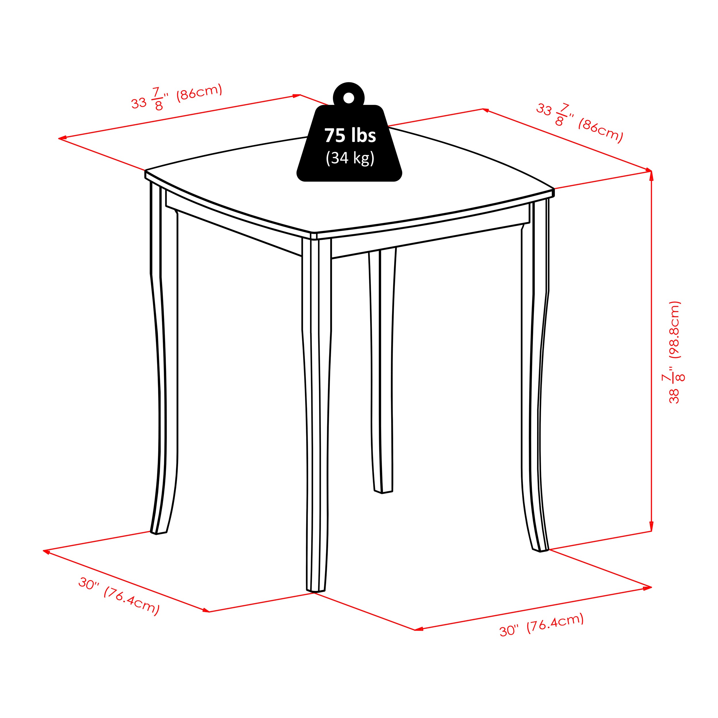 - Overall High Table size is 33.86"W x 33.86"D x 38.90"H.