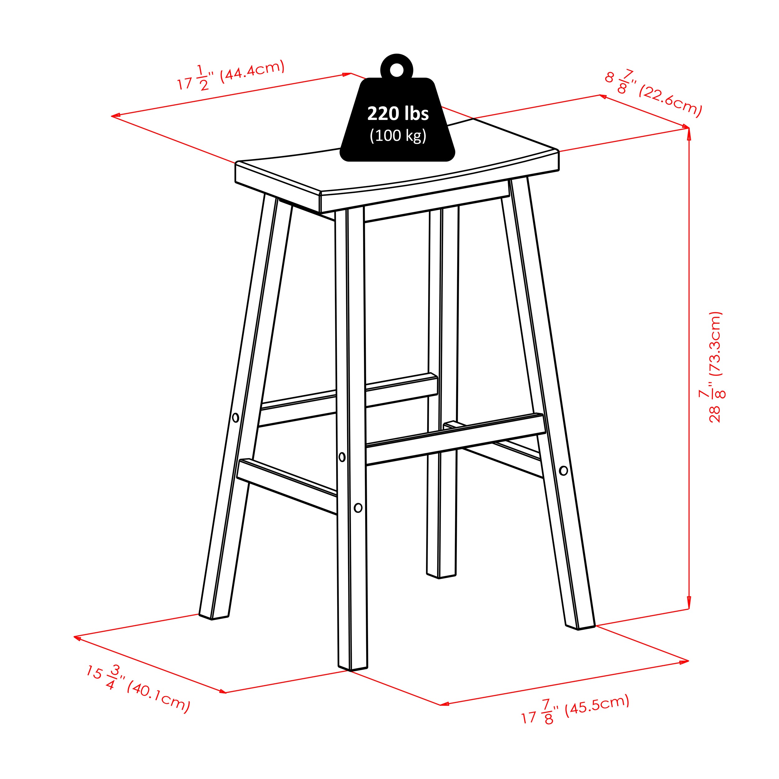- Includes 2 Assembled Bar Saddle Seat Stools 17.91"W x 15.79"D x 28.86"H