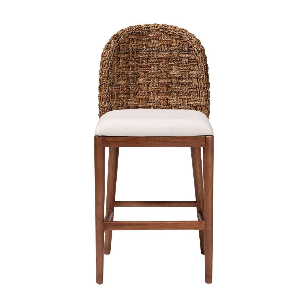 Introduce a touch of modern bohemian warmth to your kitchen or bar with the Denver counter stool. Crafted in Indonesia from durable acacia wood and accented with woven seagrass, this stool pairs earthy texture with refined comfort—its padded, fabric-upholstered seat and rounded backrest provide a supportive, cozy sit while the integrated footrest and angled legs promote relaxed, ergonomic posture. Fully assembled and designed to blend rustic character with contemporary lines, the Denver elevates everyday gatherings and casual dining alike.
