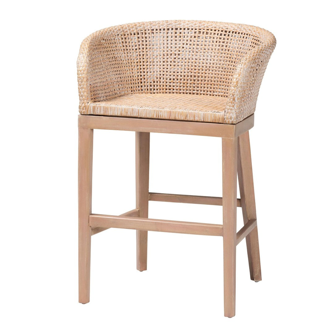Elevate your kitchen or bar area with the Papua counter stool — a handcrafted blend of rustic bohemian charm and durable construction. Made in Indonesia, this piece pairs a solid mahogany frame with woven natural rattan for a warm, textured look that complements coastal, modern boho, and eclectic interiors. The rounded back and flared armrests cradle the sitter comfortably, while the integrated footrest and fully assembled delivery make it ready for immediate use.